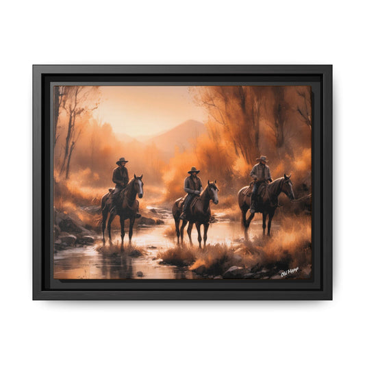Cowboys Crossing A Stream Wood Framed Canvas Wrap