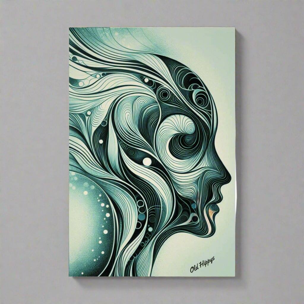 The green shades might be concentrated along certain areas, such as the edges of the figure or in abstract swirling patterns that surround and merge with the silhouette. This could evoke the idea of movement or transformation, symbolizing growth, nature, or a connection between the figure and her surroundings.