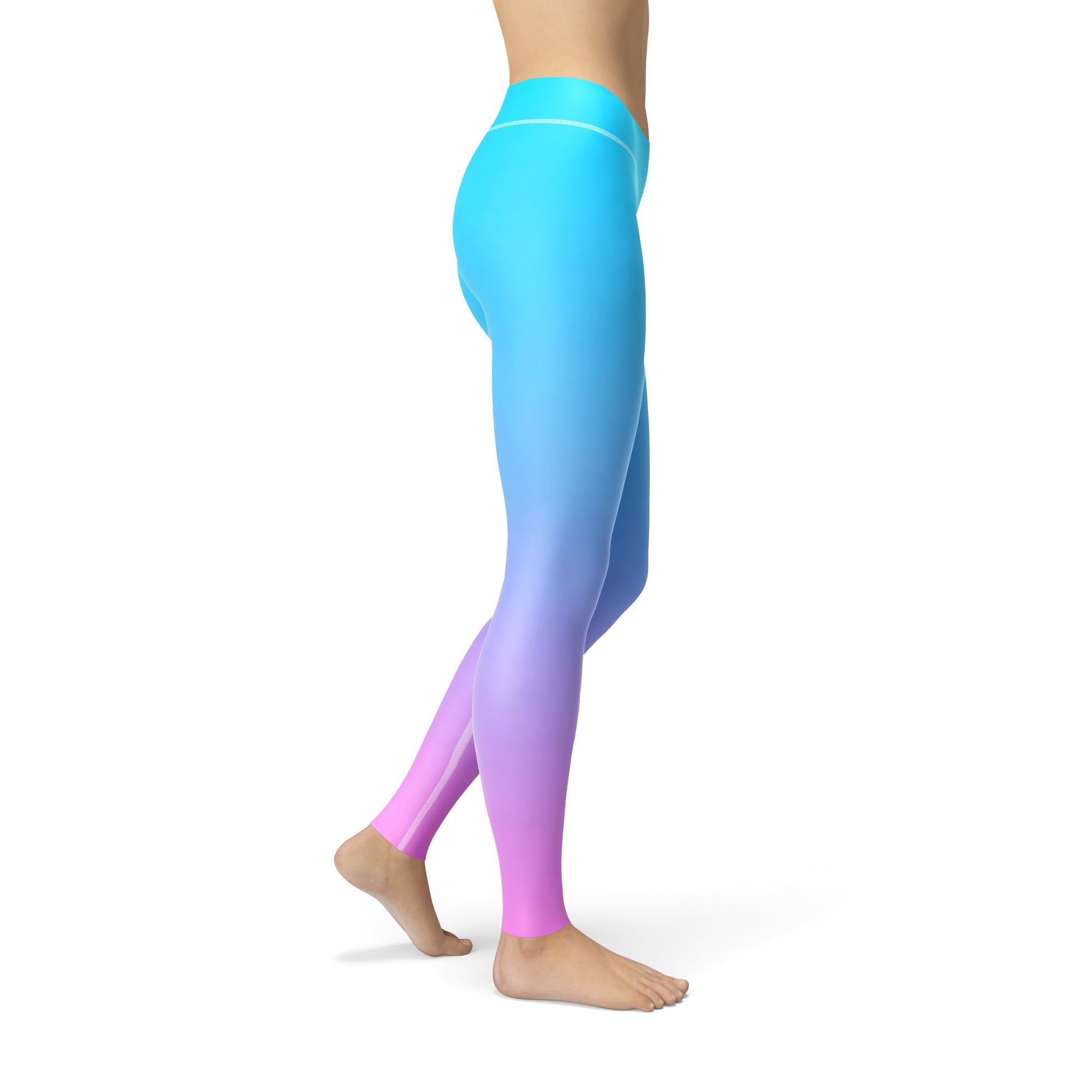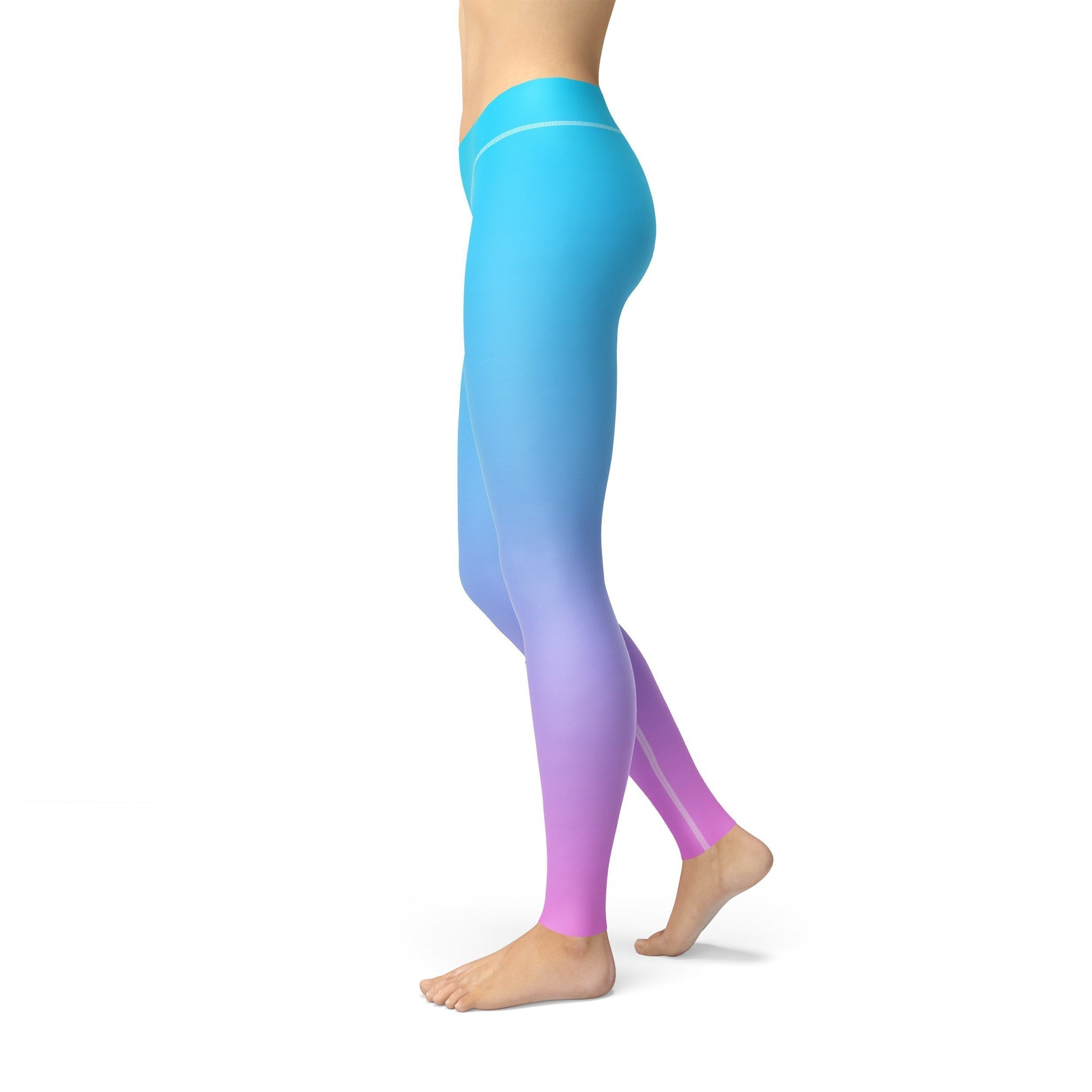 The Avery Blue Pink Ombre Leggings with 1.5 inch waistband offers a secure and comfortable fit on Soft Lycra fabric. Go ahead Run, Jump, or just relax, these leggings are perfect for any occasion.