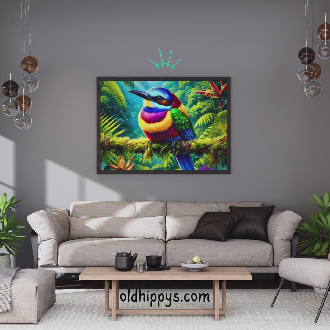 Bring home this vivid celebration of color and wild beauty — and let the spirit of the rainforest sing from your walls.