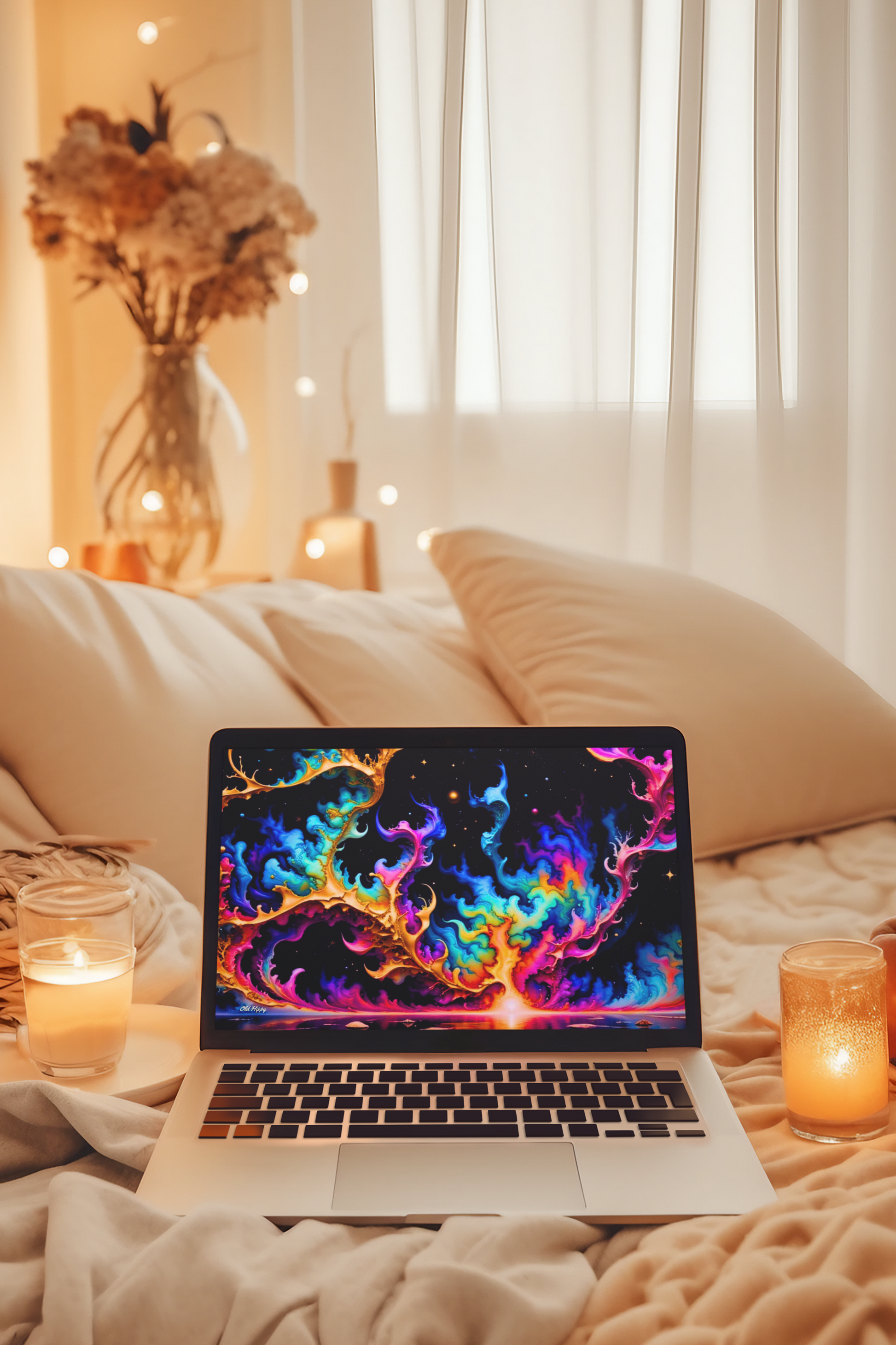 A swirling explosion of light, fire, and color ignites the heavens in this surreal AI-generated masterpiece. Featuring fiery fractals, galactic spirals, and an ethereal sky bursting with vibrant energy, this image captures the exact moment where cosmos meets imagination.