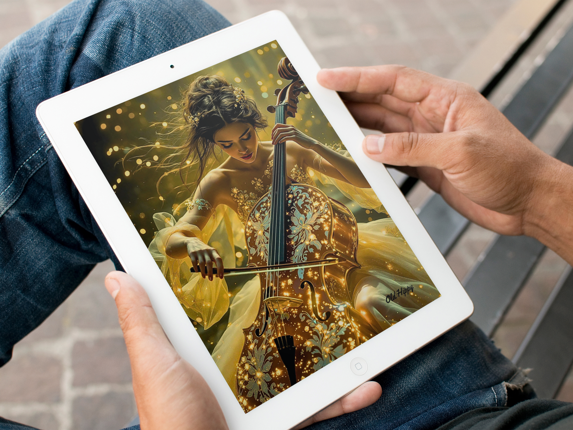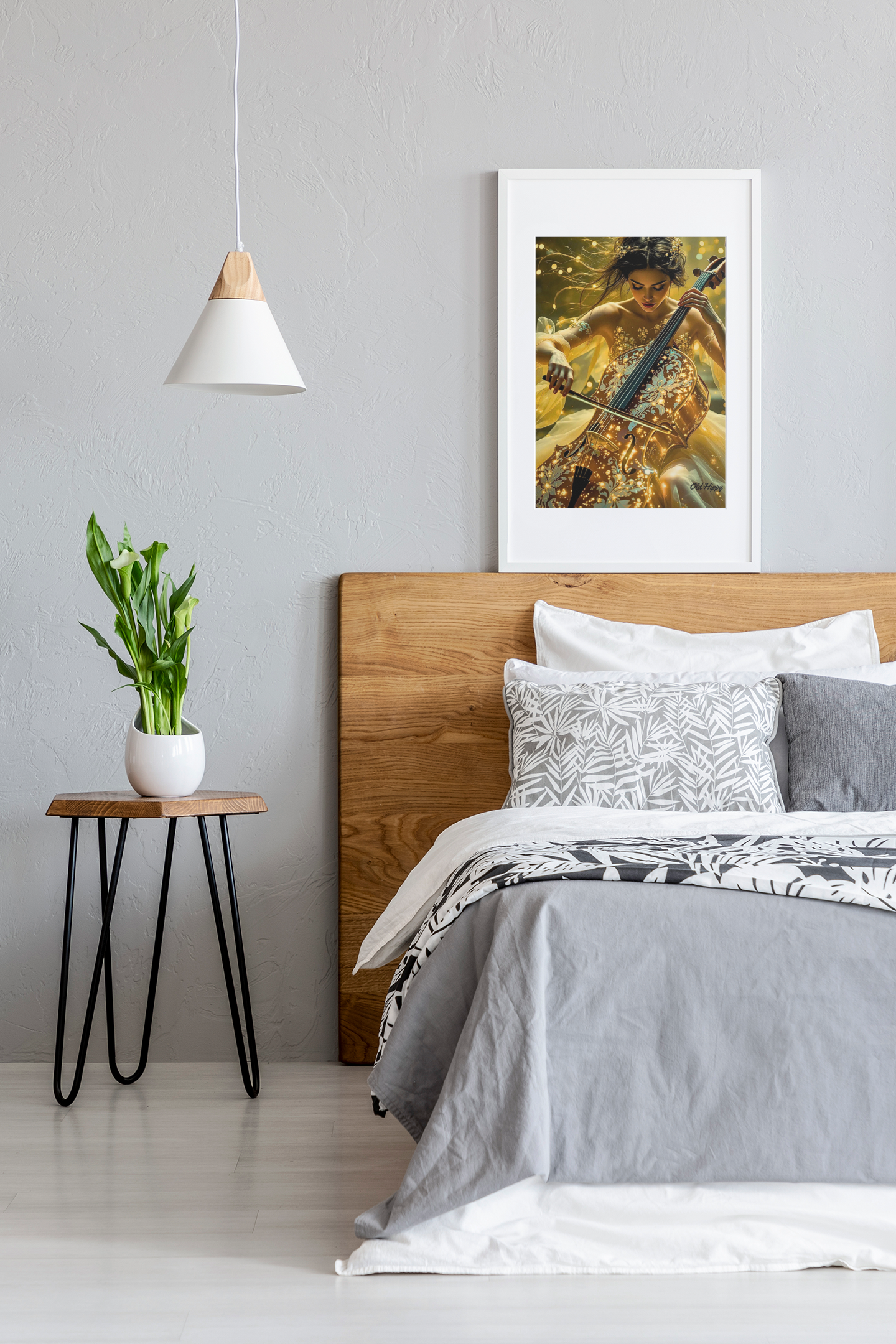 A fairytale brought to life, this artwork celebrates the divine harmony between music, beauty, and imagination. An ode to elegance, wonder, and the quiet magic we carry within.