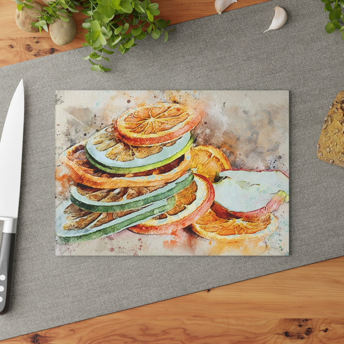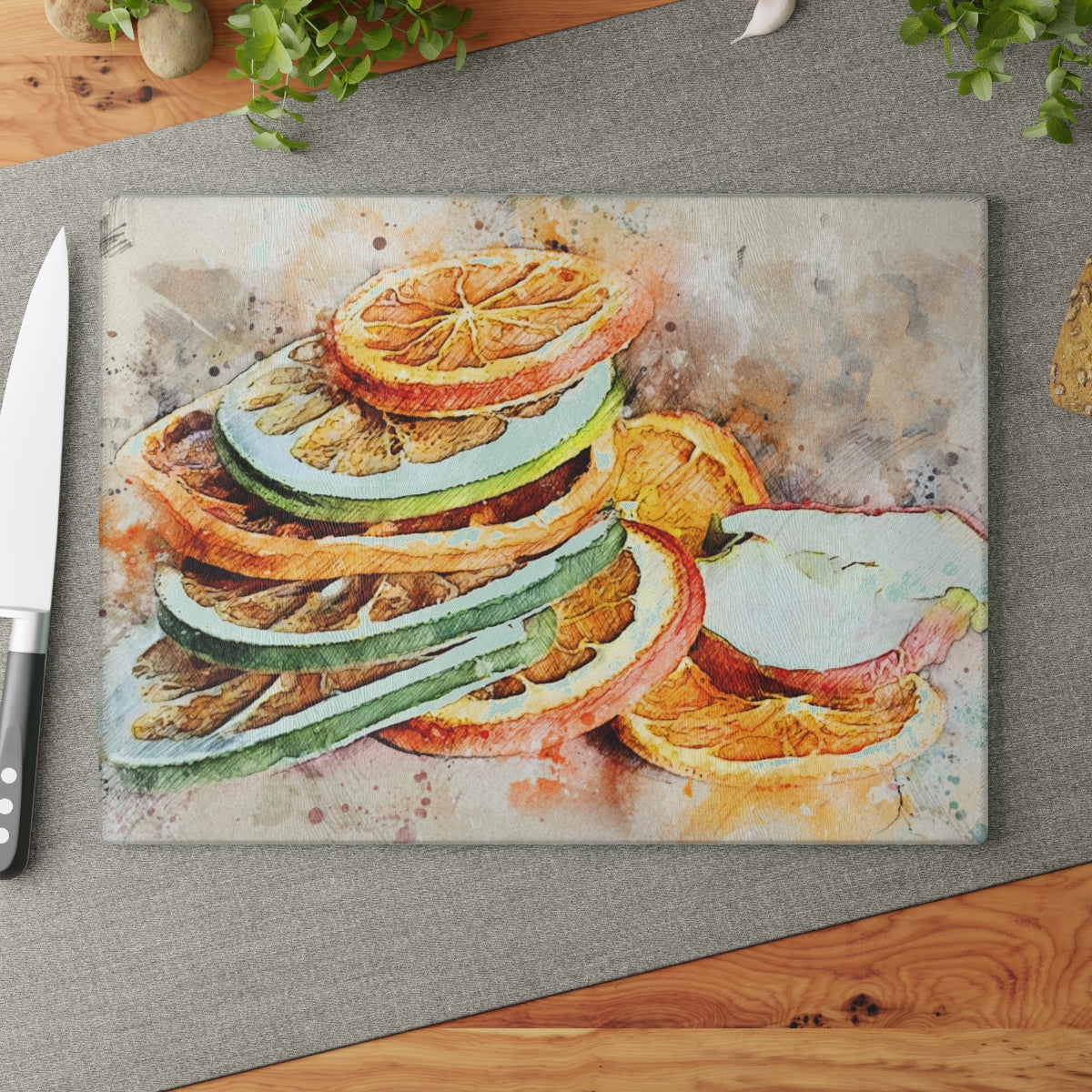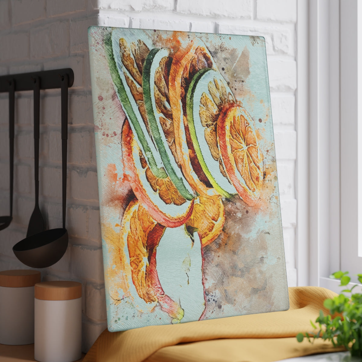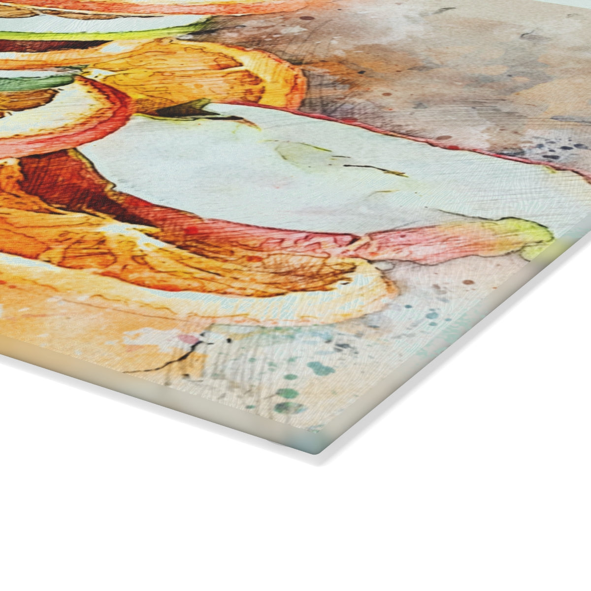 Bring a touch of character into any kitchen with this custom glass cutting board. Its tampered glass material is robust and helps prepare many a tasty meal for a long time to come. The textured surface makes it an ideal chopping, slicing, and dicing area. Available in two sizes: 8" x 11" and 11" x 15".