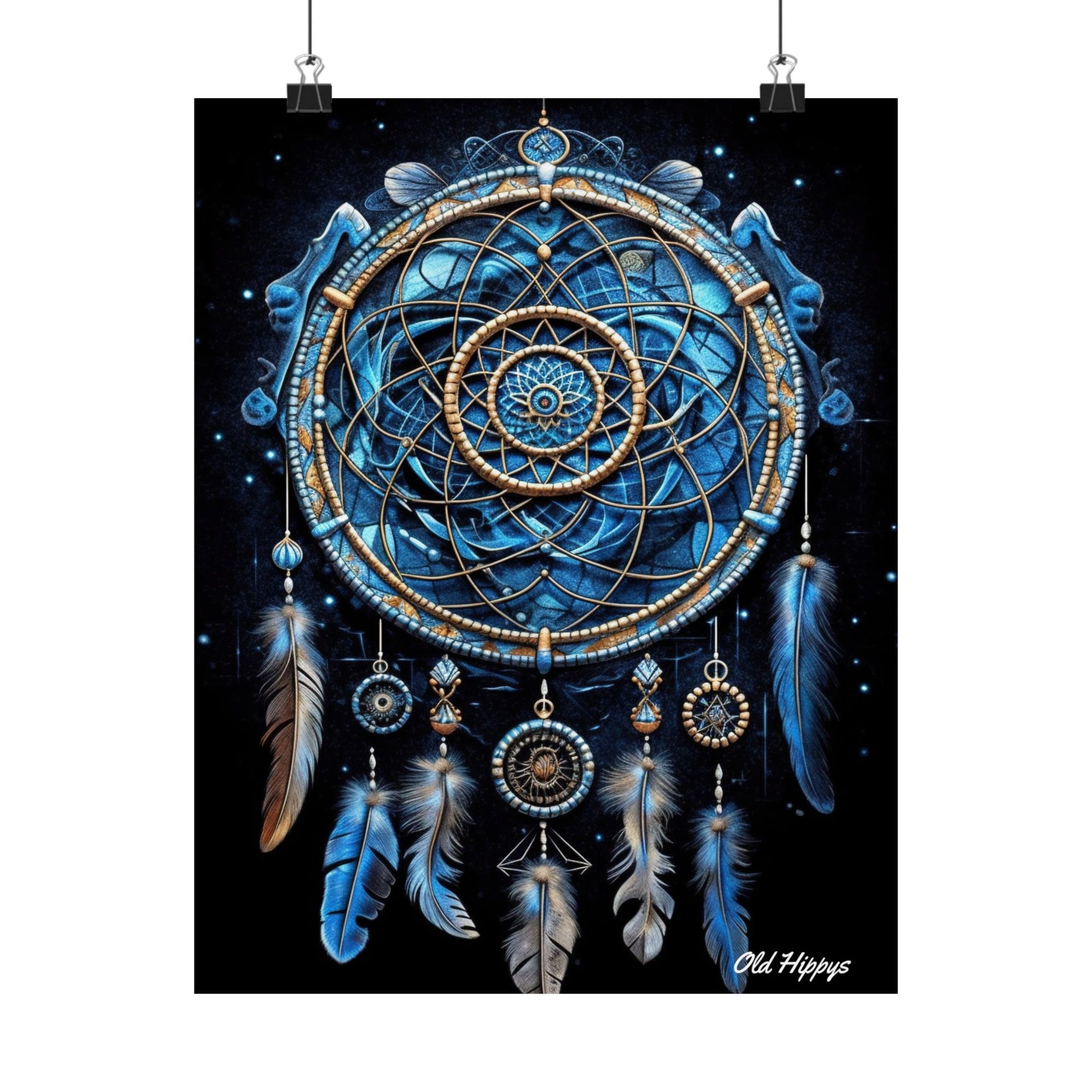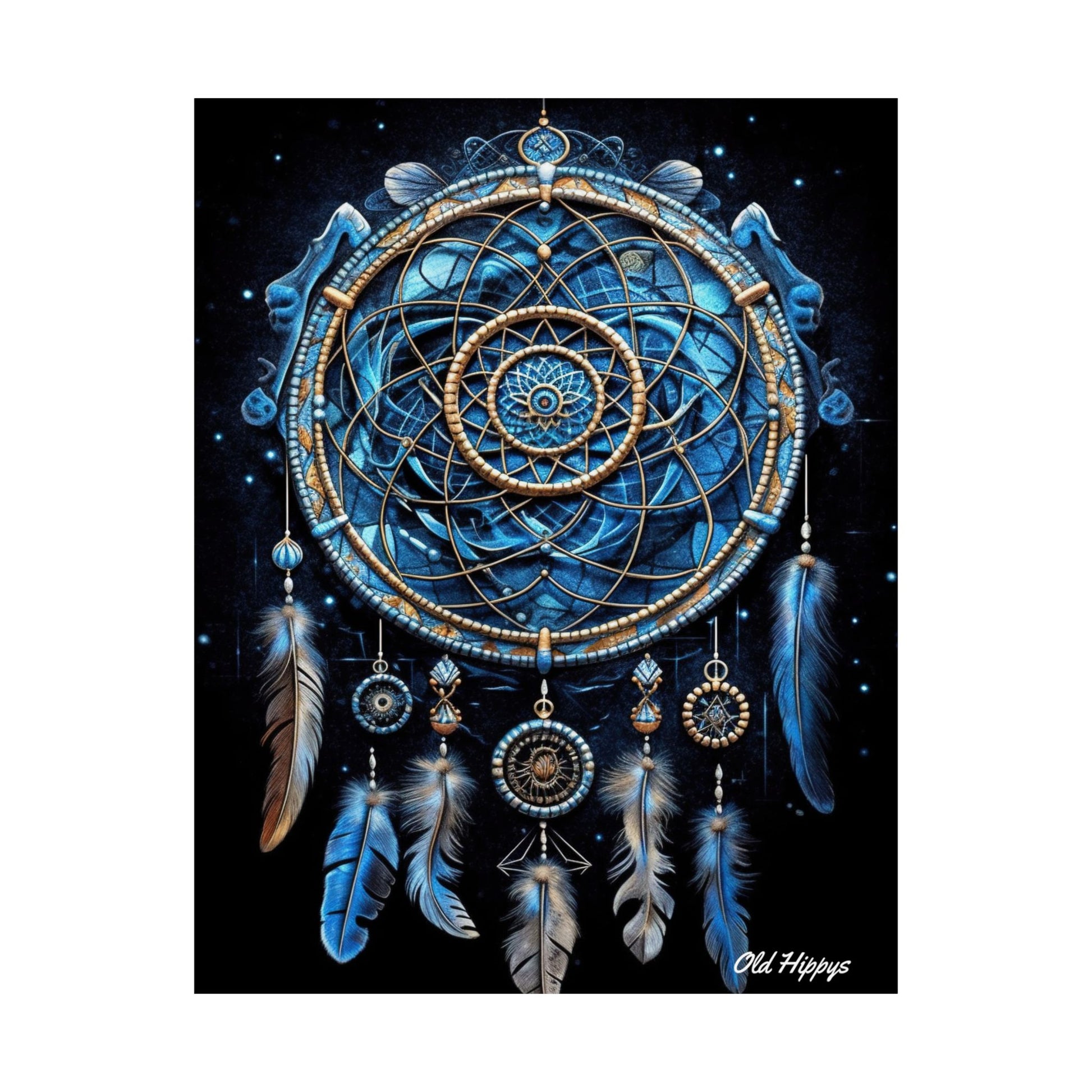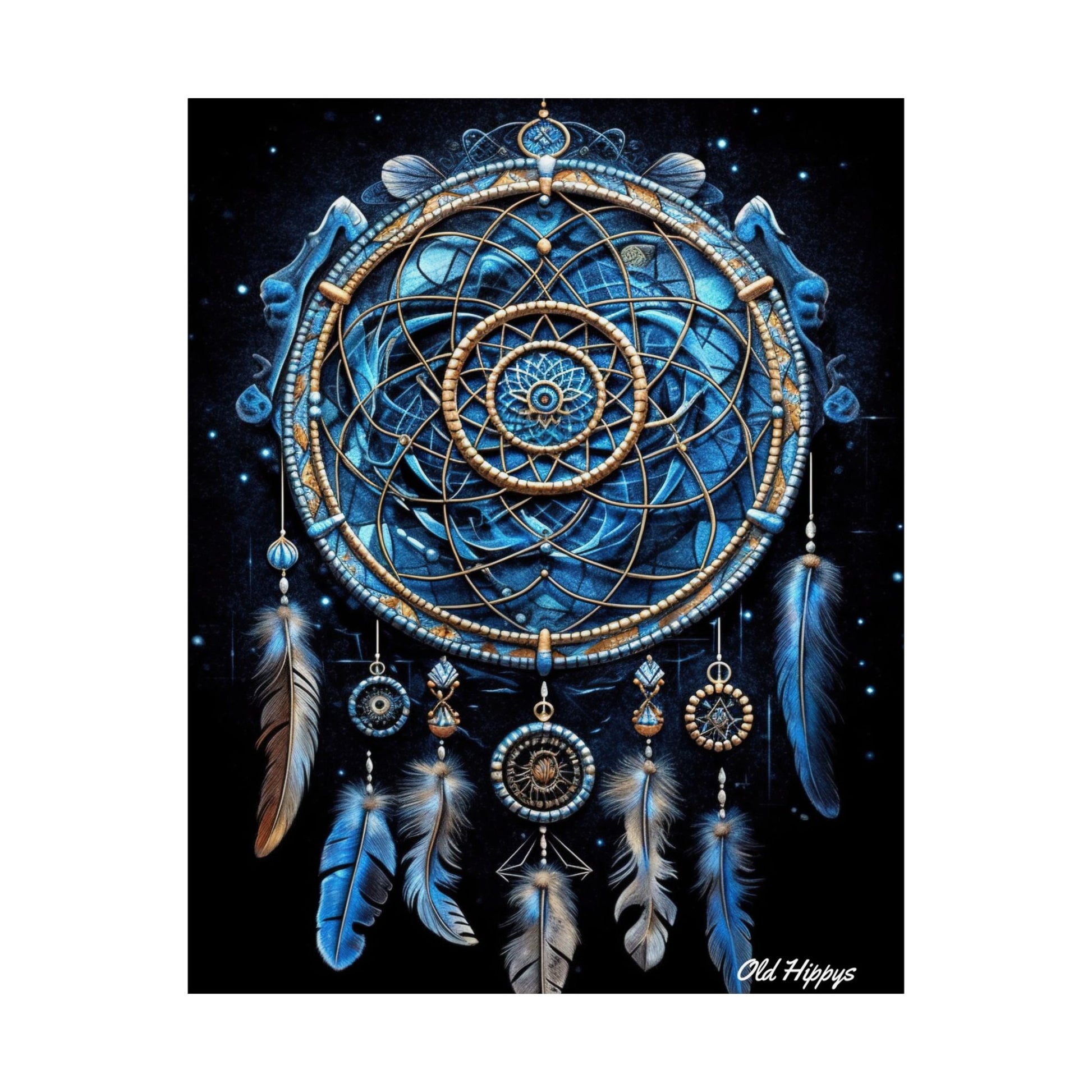 A beautiful canvas featuring an AI generated painting of a blue dream catcher with feathers and beads. This fantasy art promotes internal visualizations and dreams, adding a mystical vibe to any room. Perfect for dreamers and those who enjoy fantasy art, great for decorating bedrooms or meditation spaces. Ideal for gifting during birthdays, holidays, or housewarmings.