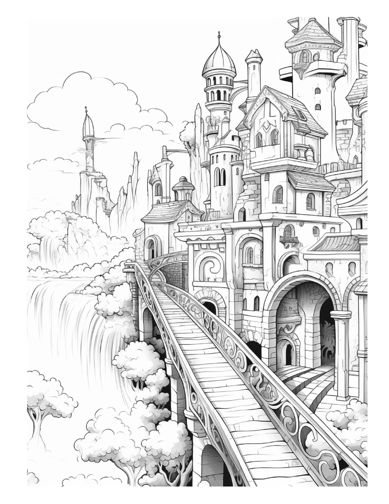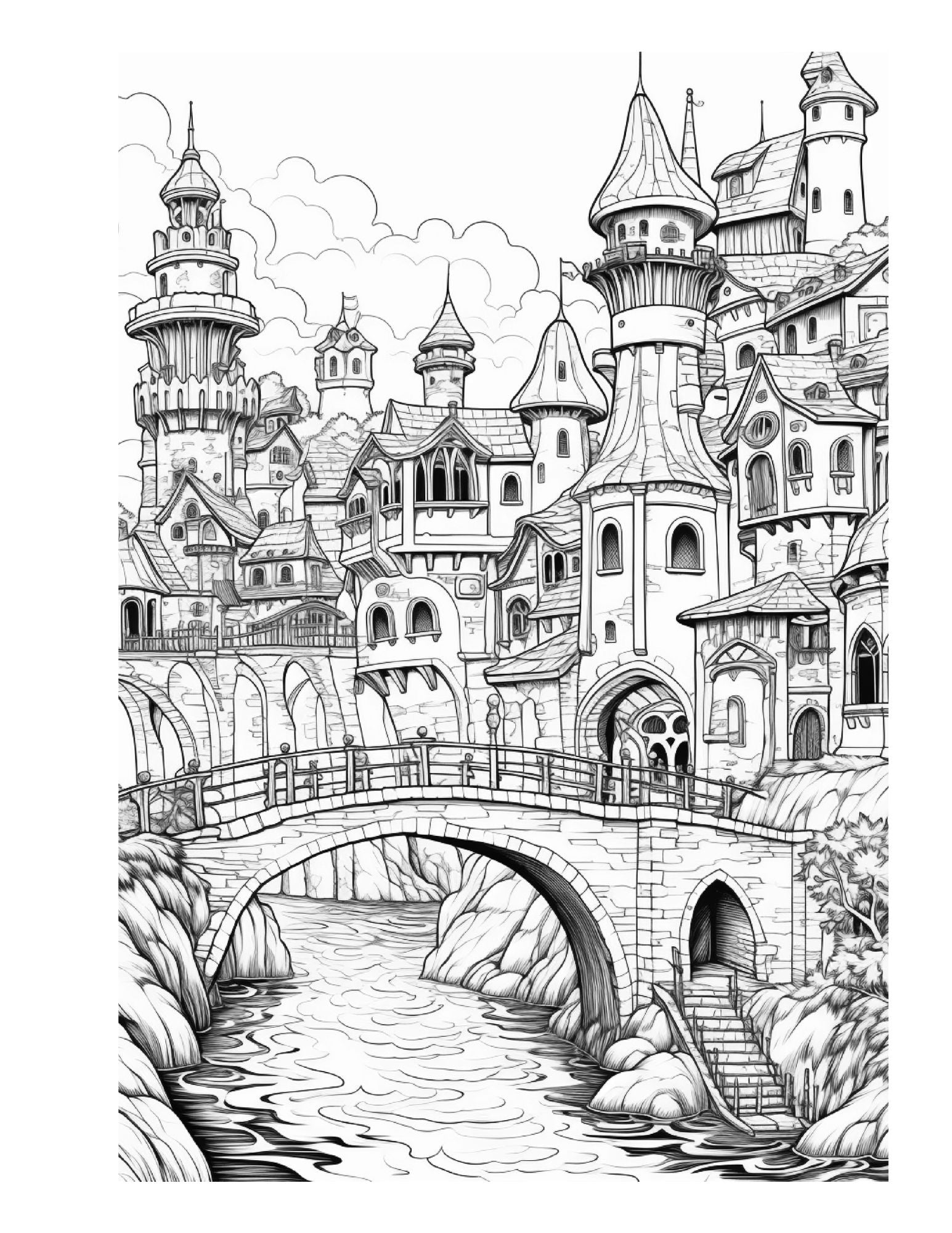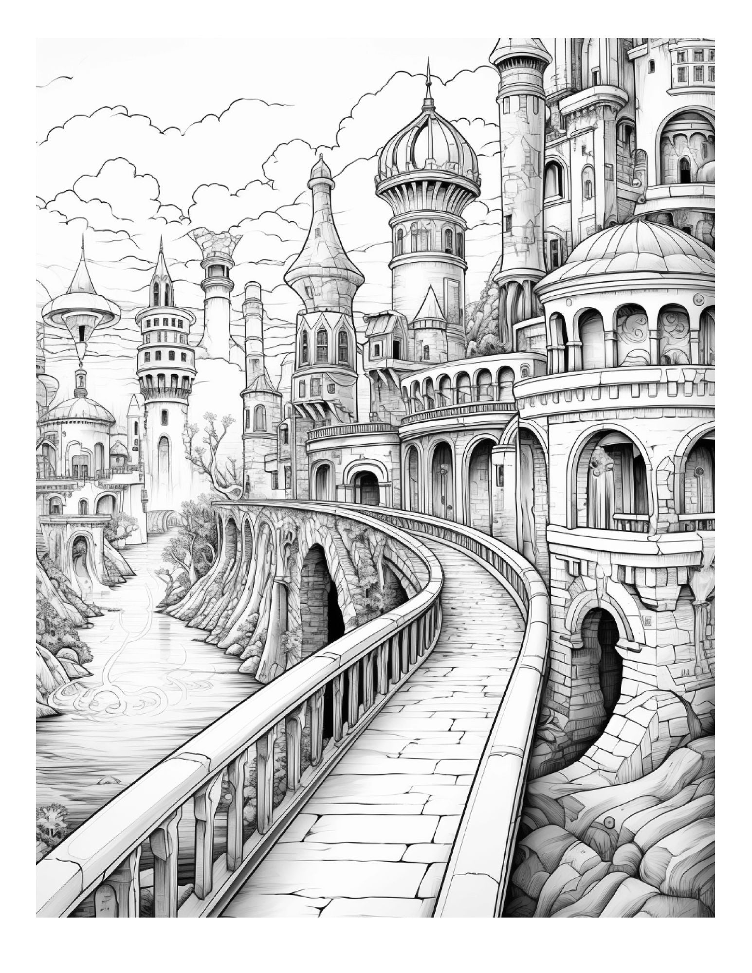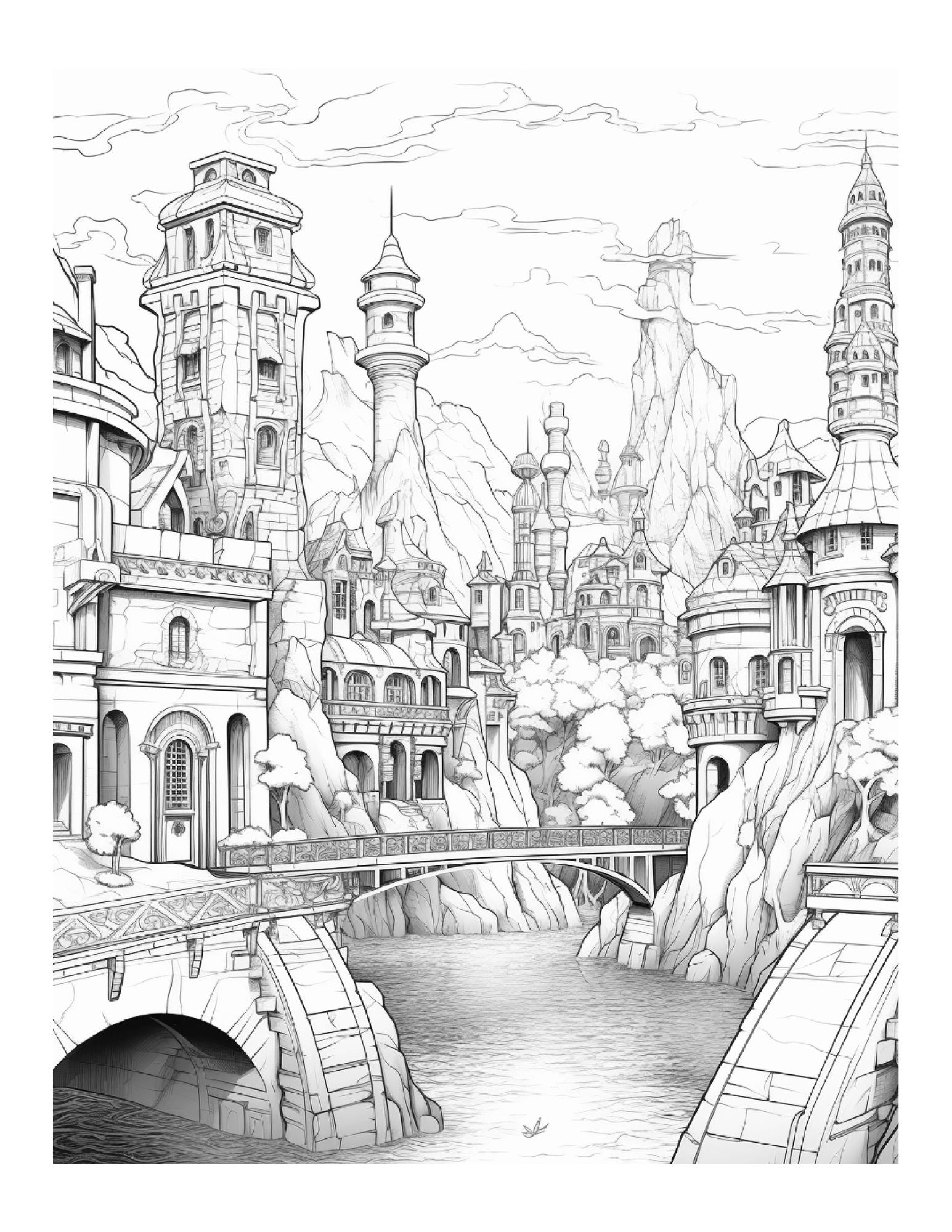✔️ Intricate illustrations of magical cities, towers, bridges & fantasy landscapes
