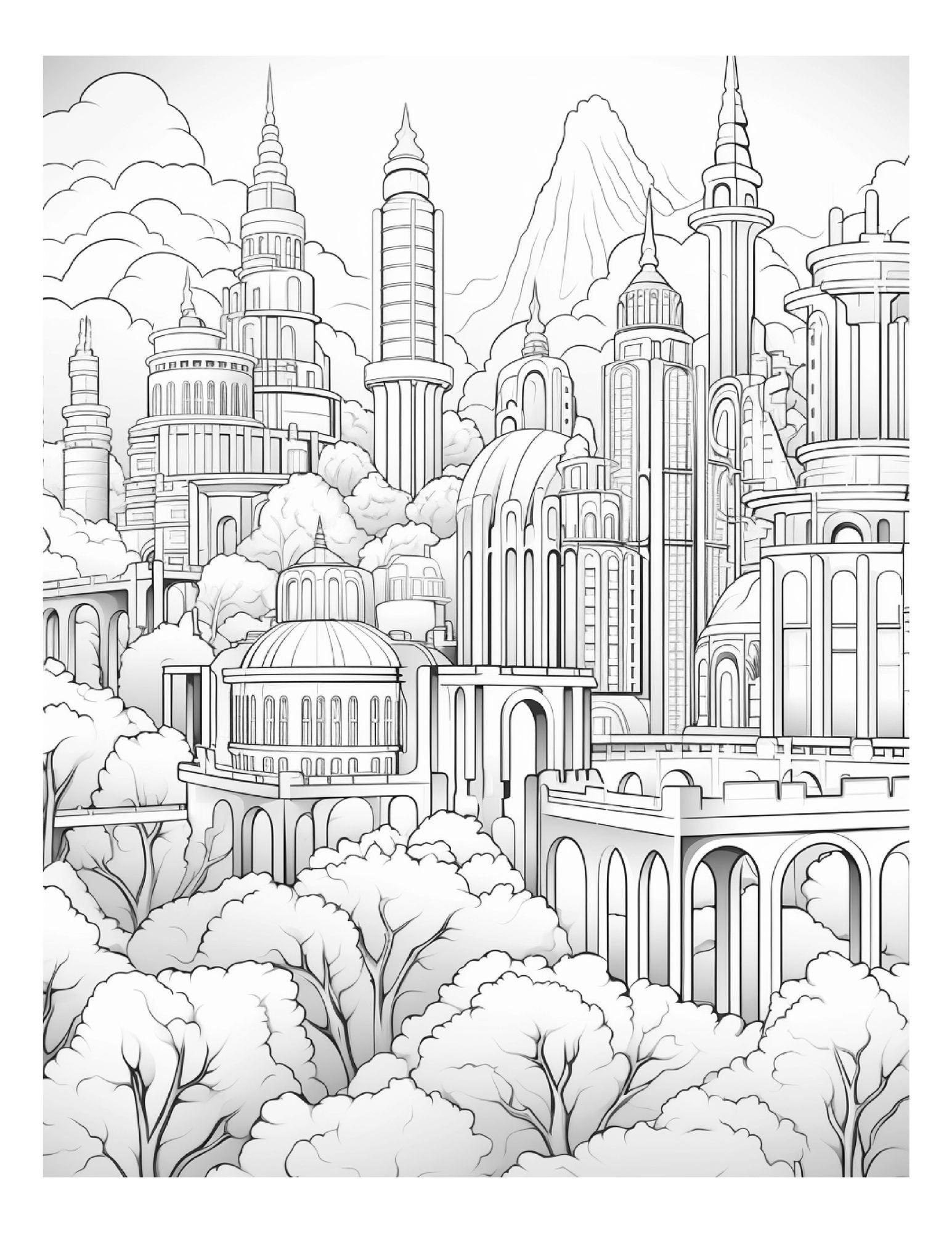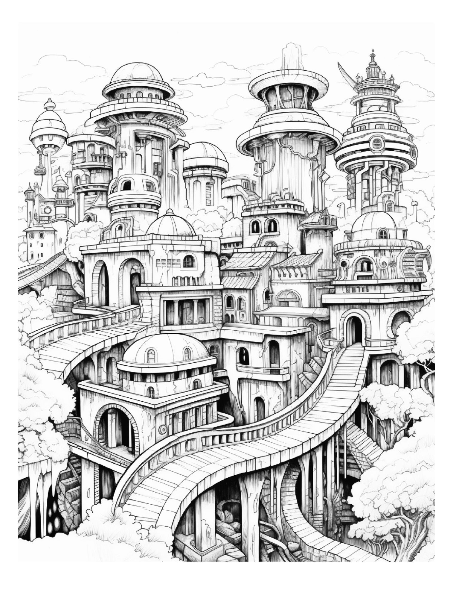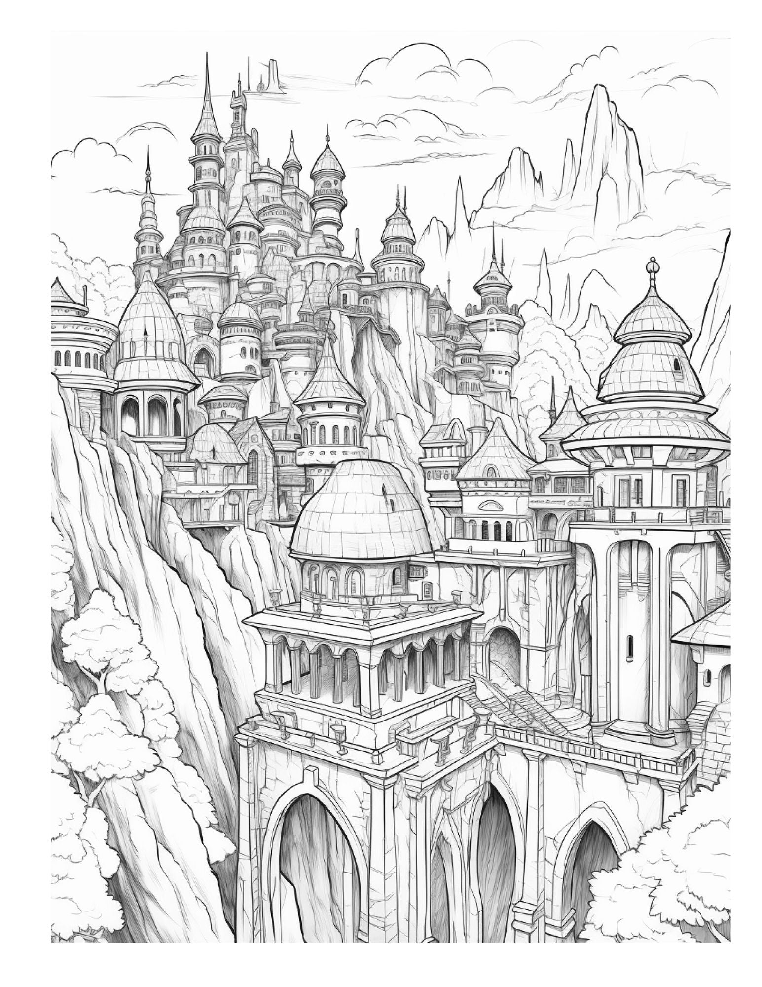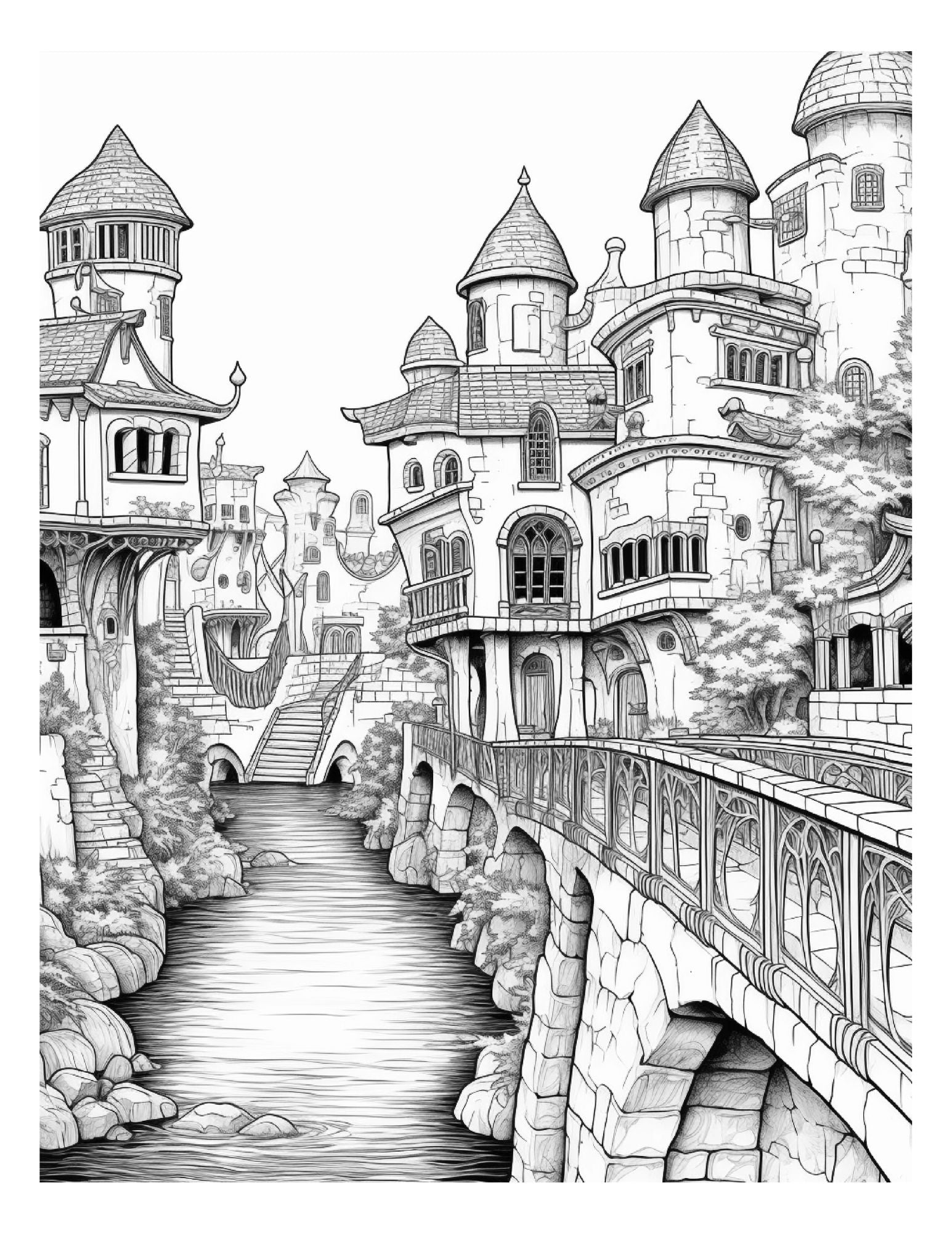✔️ Intricate illustrations of magical cities, towers, bridges & fantasy landscapes