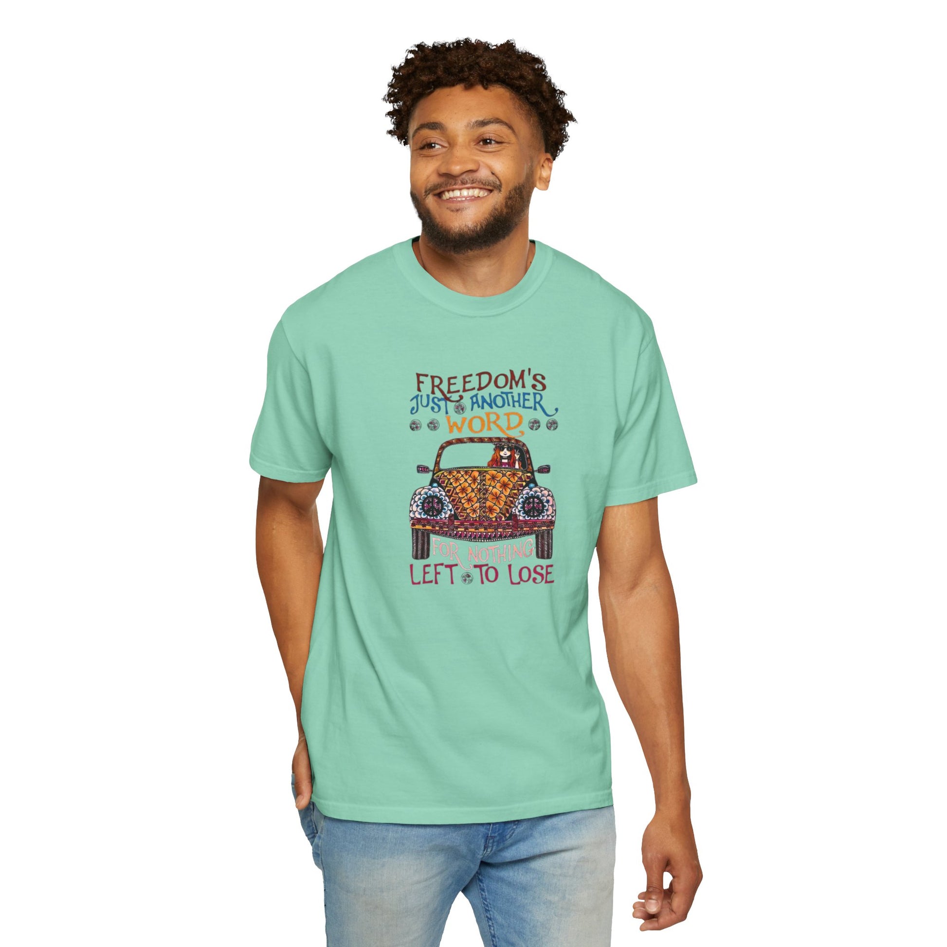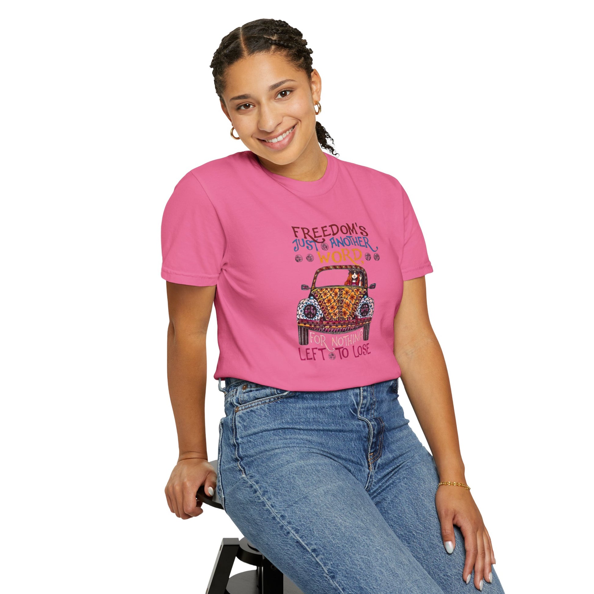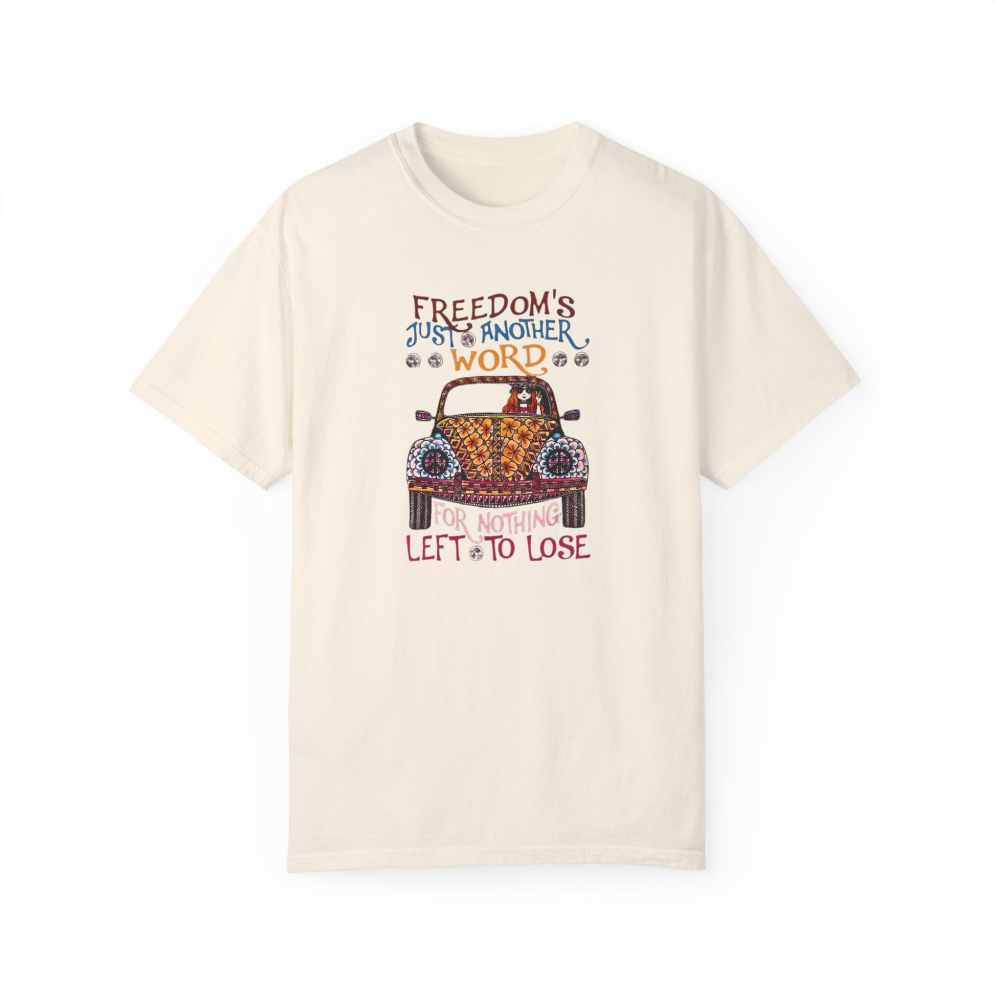 Make a Statement with these classic lyrics from the 70s. You'll stand out from the crowd and let your freedom voice be heard. Beautiful garment-dyed t-shirt, tee made 100% with ring-spun cotton. The soft-washed, garment-dyed fabric brings extra coziness to your wardrobe while the relaxed fit makes it an excellent daily choice. The double-needle stitching throughout the tee makes it highly durable while the lack of side-seams helps the shirt retain its tubular shape. Discover all 58 colors in our Comfort Colors 1717 color charts below.