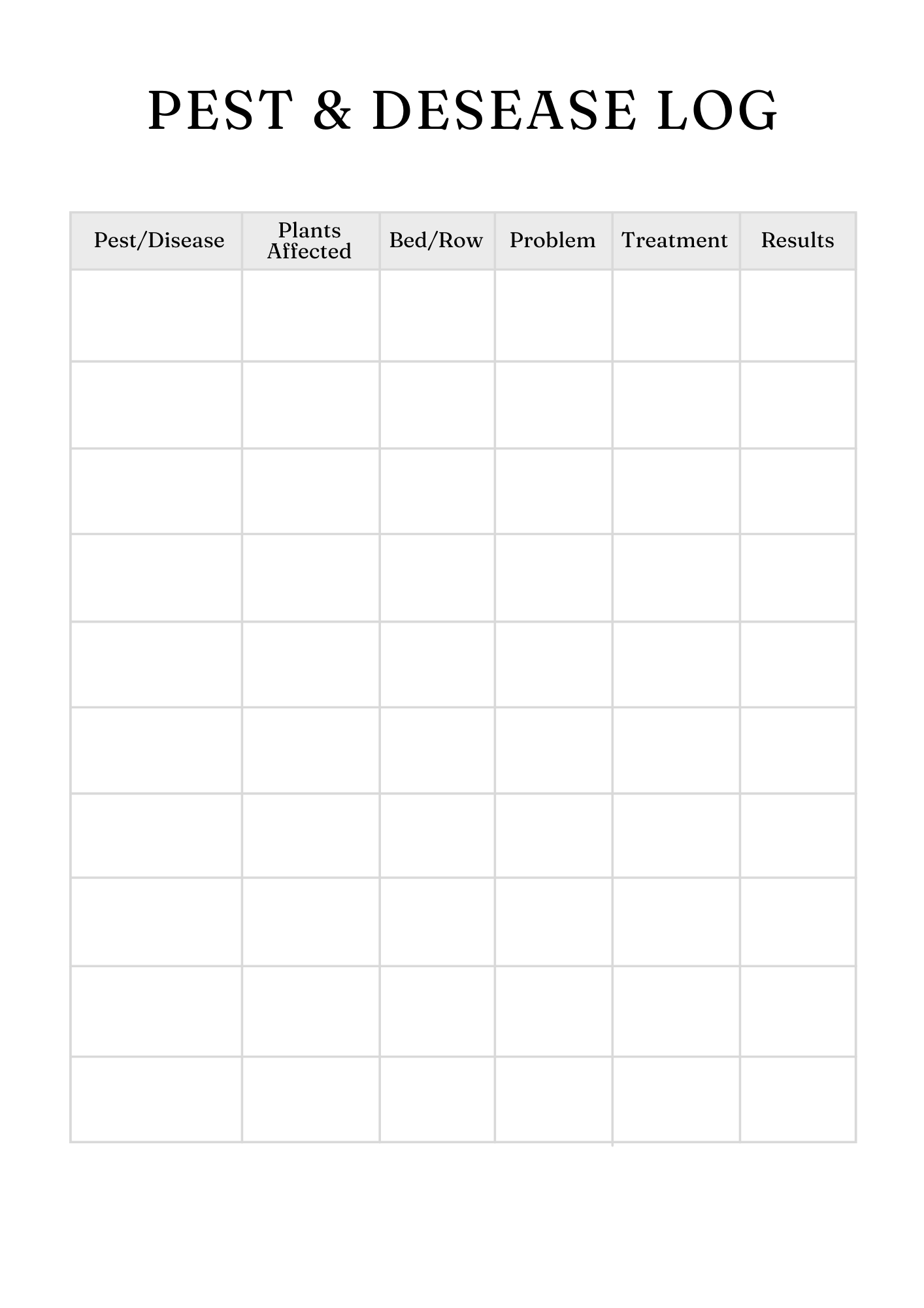 40 page Comprehensive Garden Planner. Track seeds, type of plants, layout grids, watering schedules, pest and disease log, and much more.