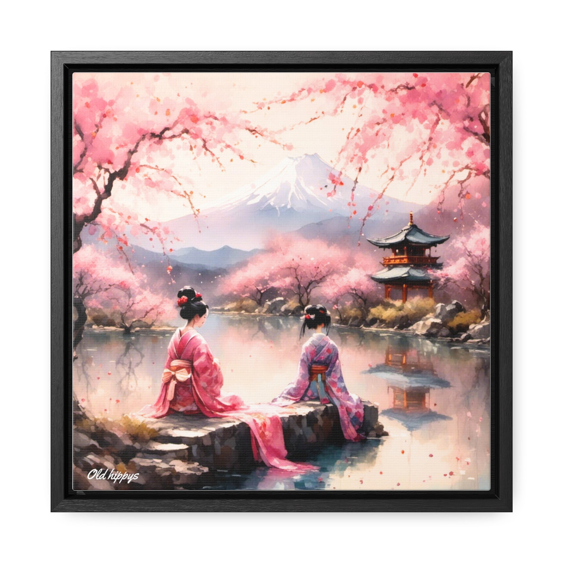 Geisha Tea Ceremony Wood Framed Canvas Wrap