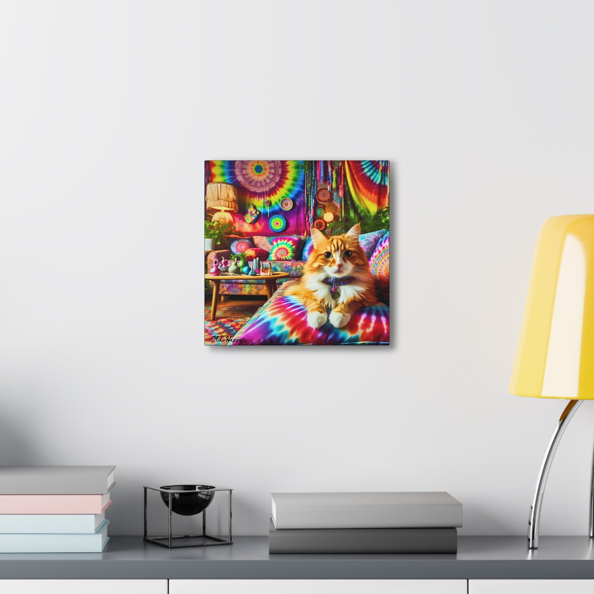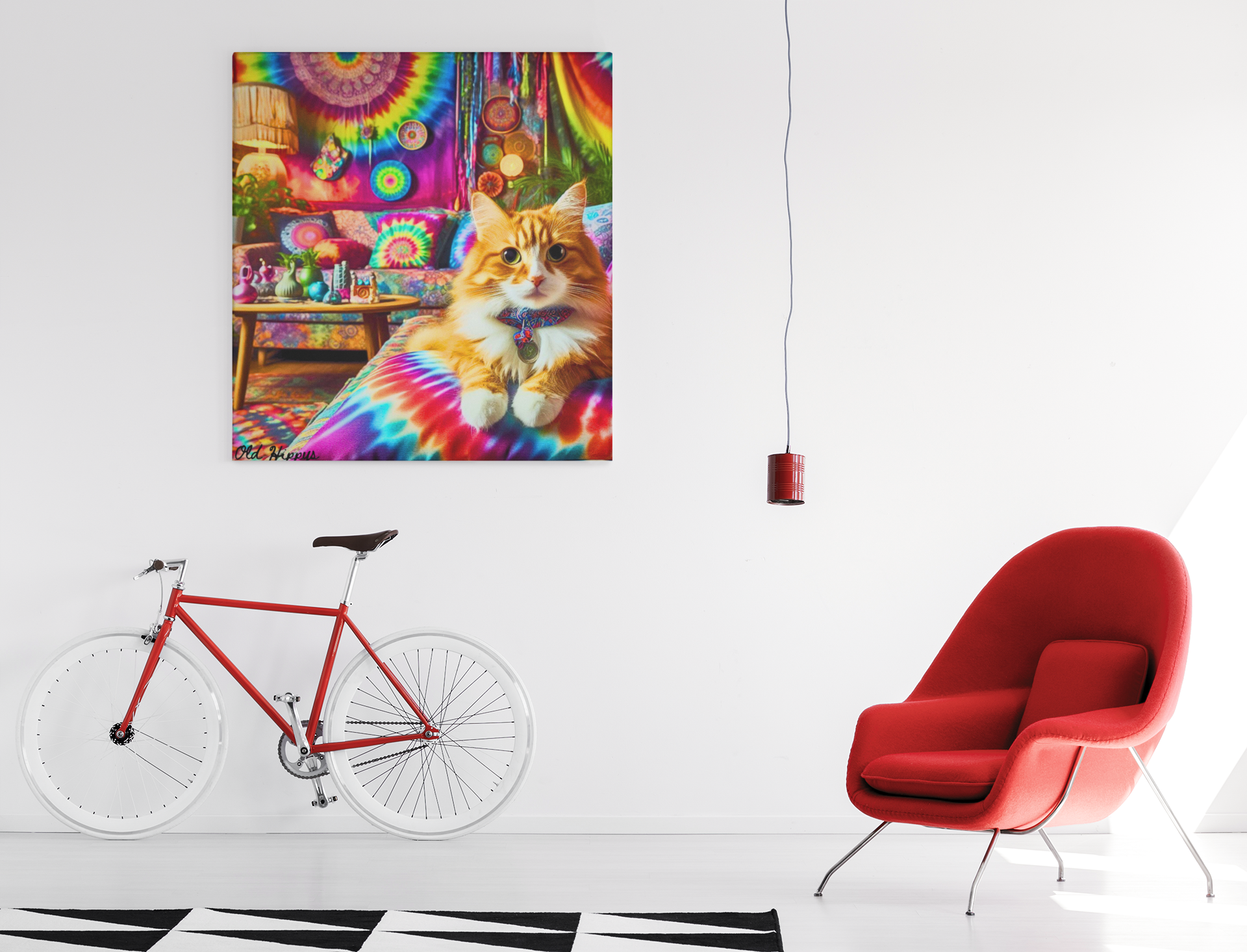 My interpretation of a hippie owned cat in the living room of a hippie home. Printed on top-quality canvas. Each wrap is made with finely textured, artist-grade cotton substrate which helps reproduce your image in outstanding clarity and detail. Available in 12x12 or 20x20 sizes, these closed back canvases are built with a patented, solid support face and are excellent for indoor use.