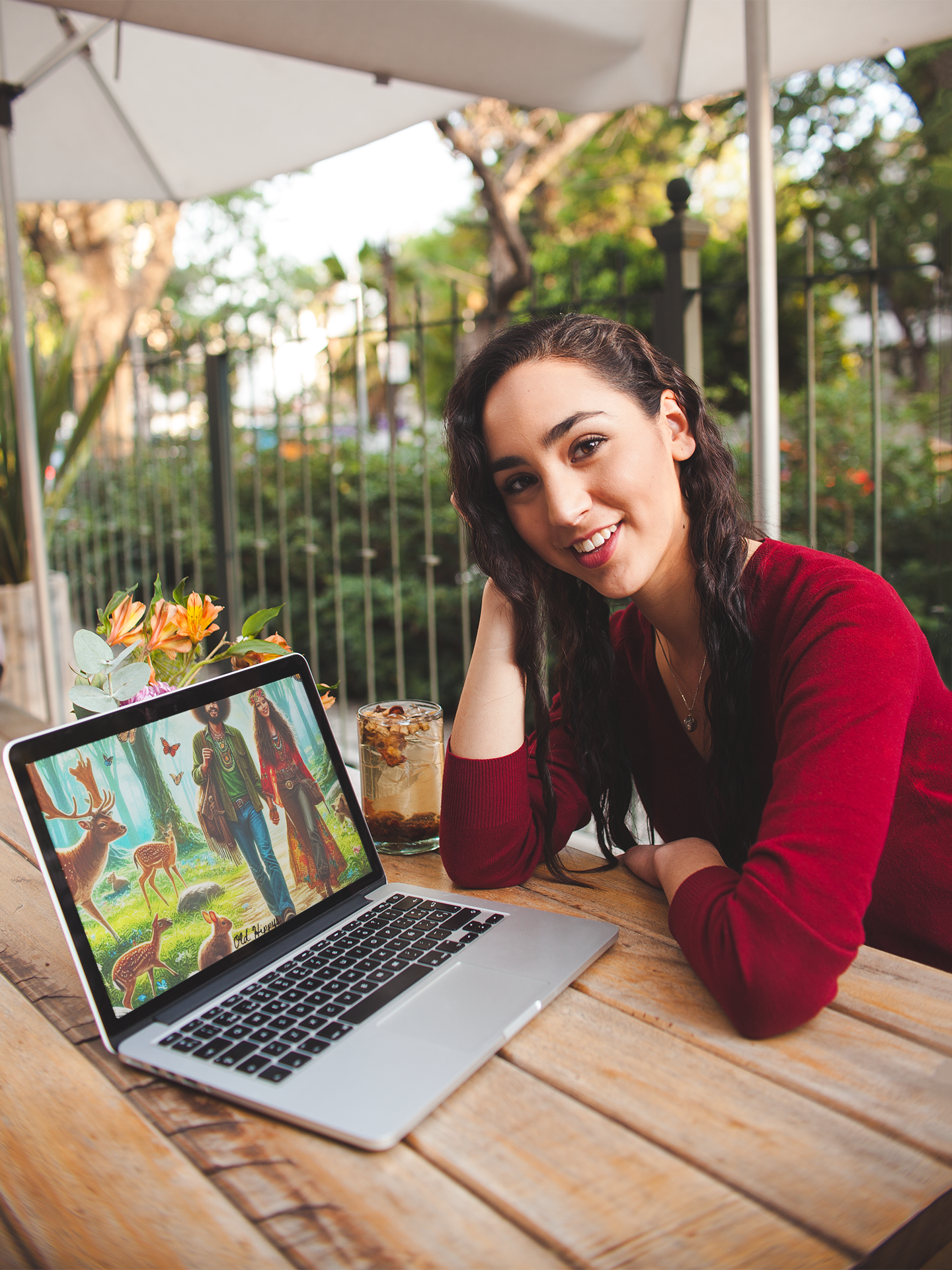 The bright colors of the forest and their clothing highlight their hippie/bohemian lifestyle.