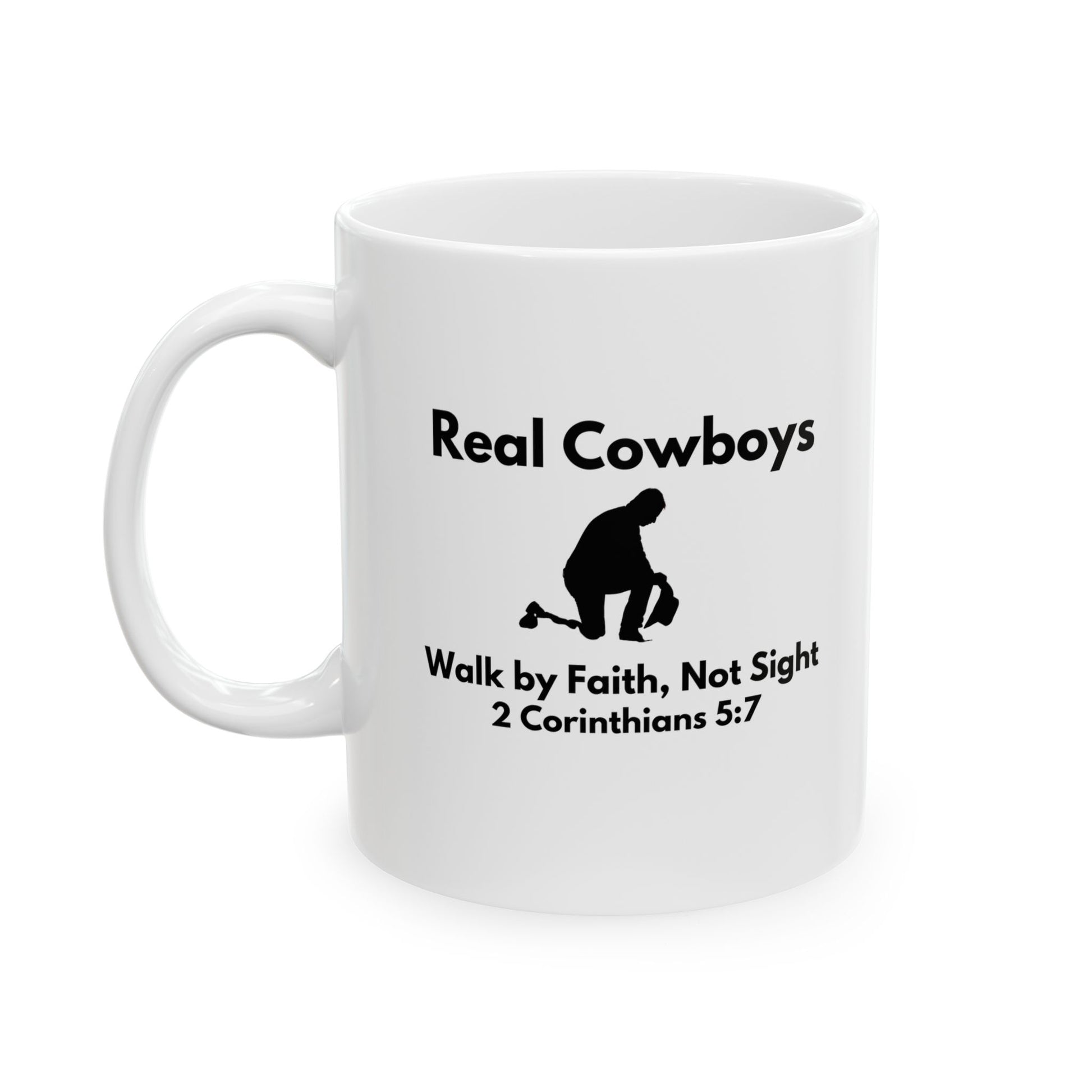Inspirational Ceramic Mug - Real Cowboys Walk by Faith, 11oz/15oz