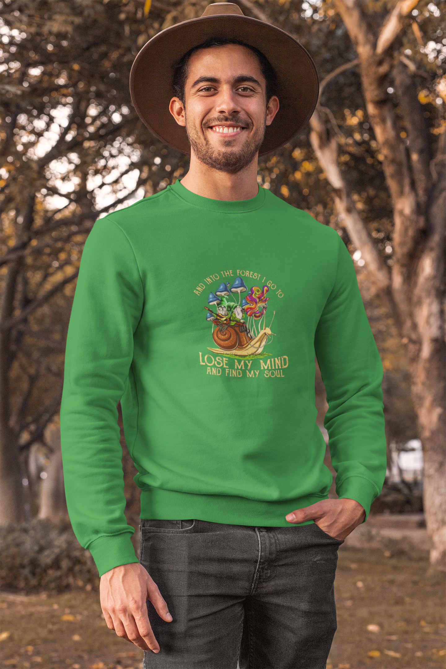 The words “And into the forest I go to lose my mind and find my soul” wrap around the scene like a mantra — a tribute to nature’s power to strip away noise and reconnect us to what really matters. The psychedelic palette invites the viewer to slow down, let go, and vibe with the weird and wonderful rhythm of the wild.