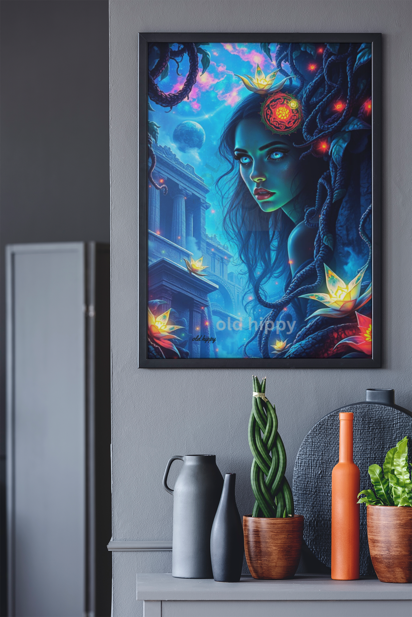 This AI-generated original artwork by Old Hippy is available as a high-resolution digital download, perfect for printing on canvas, posters, apparel, album covers, book illustrations, and more. Whether you're decorating your space or enhancing your creative project, this piece speaks to dreamers, seekers, and those drawn to hidden worlds.