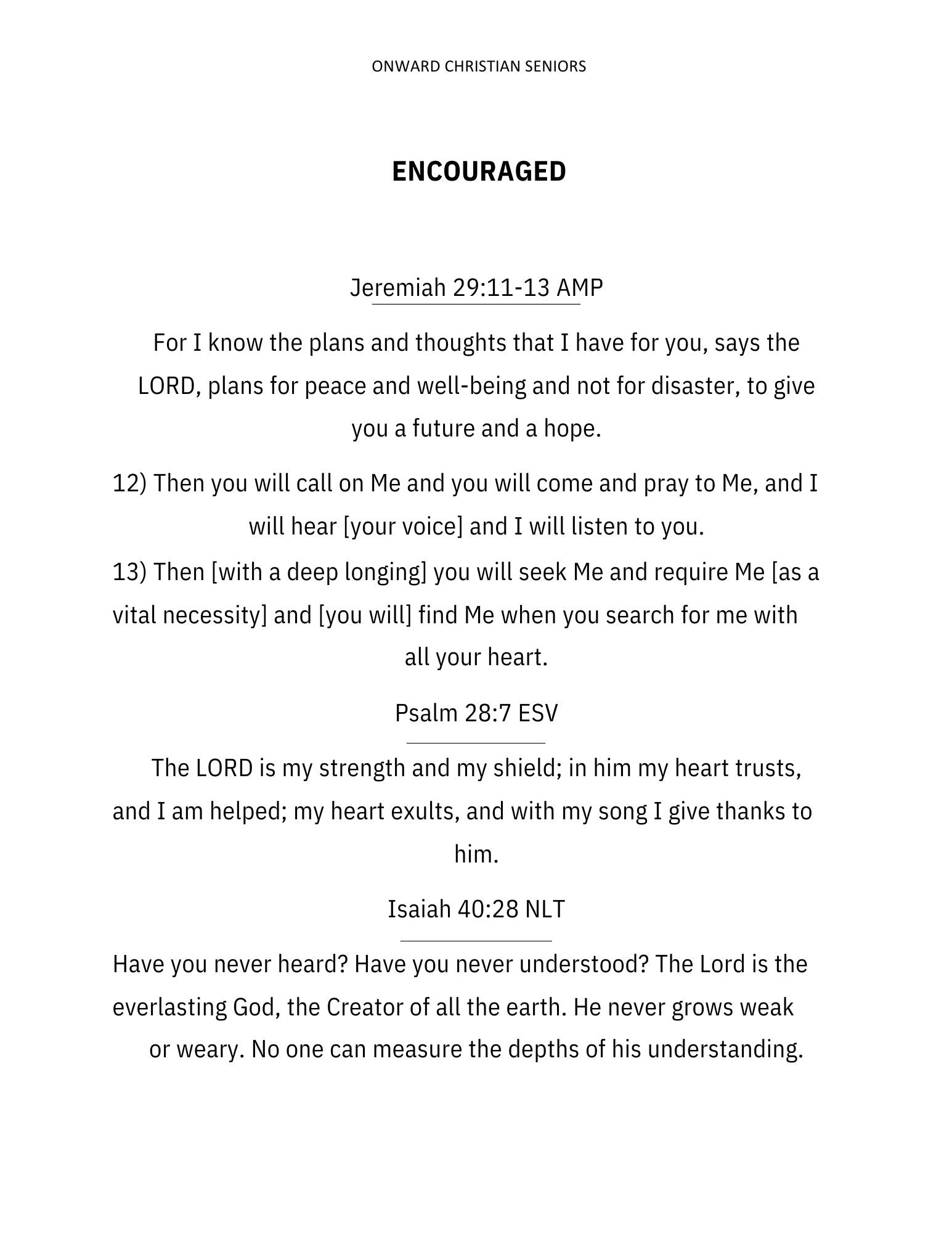 Dear Friend, whether you are seeking practical advice for daily living, spiritual nourishment for the soul, or simply a source of encouragement and inspiration, “Onward Christian Seniors” is a trusted resource for finding meaning, purpose, and hope in the later years. Discover the richness and beauty of this season of life as you journey onward with faith and confidence in God’s unfailing love. -Wanda Robinson-