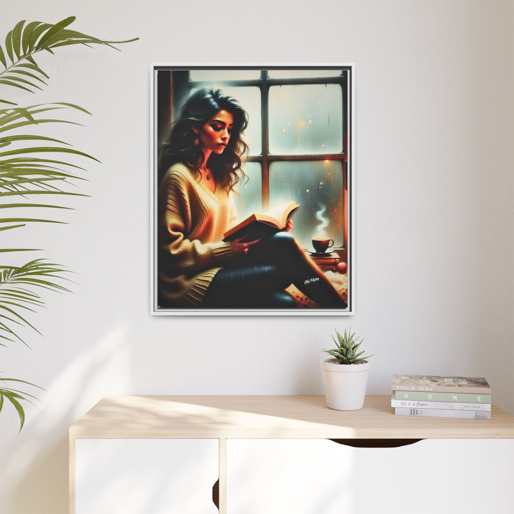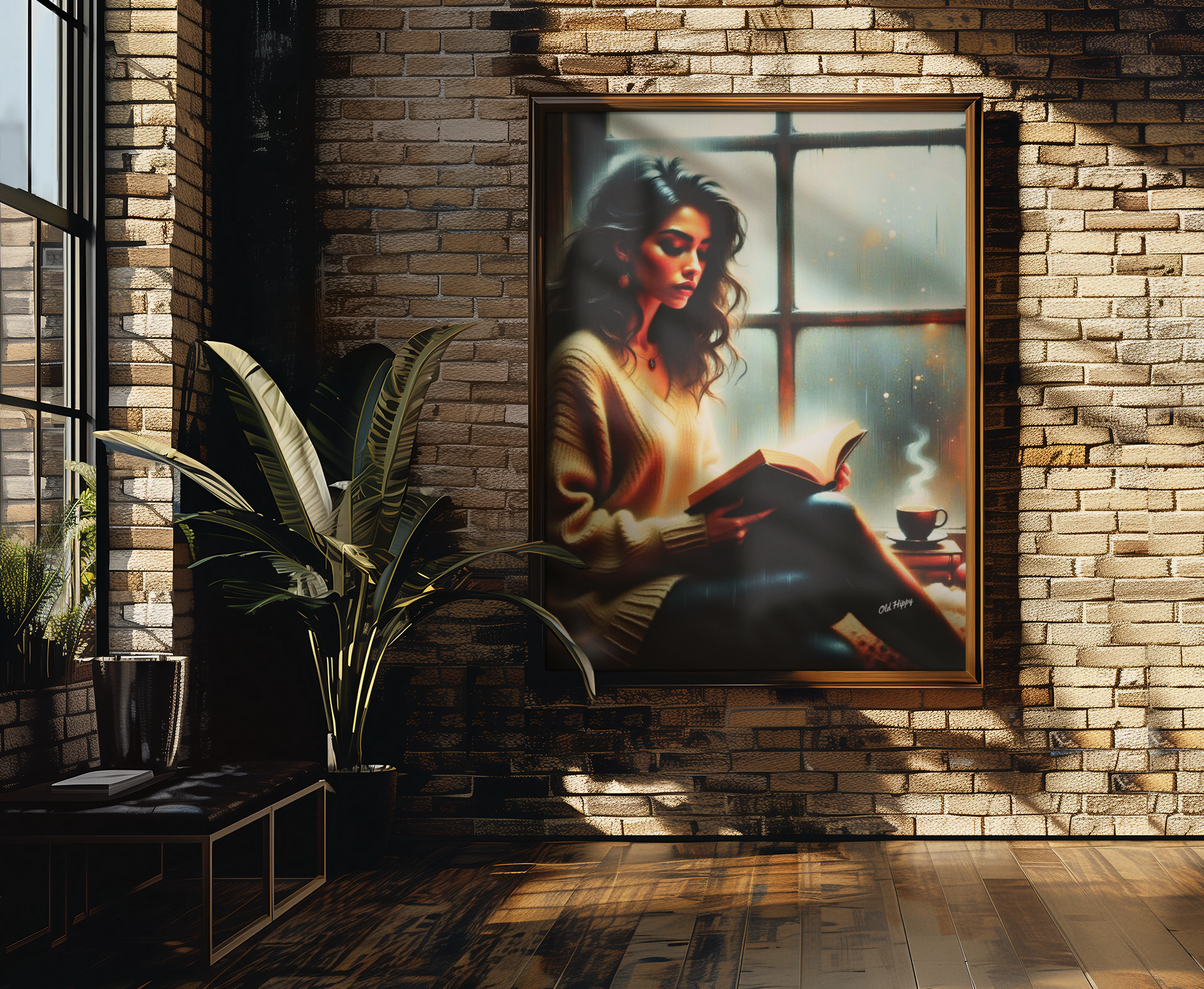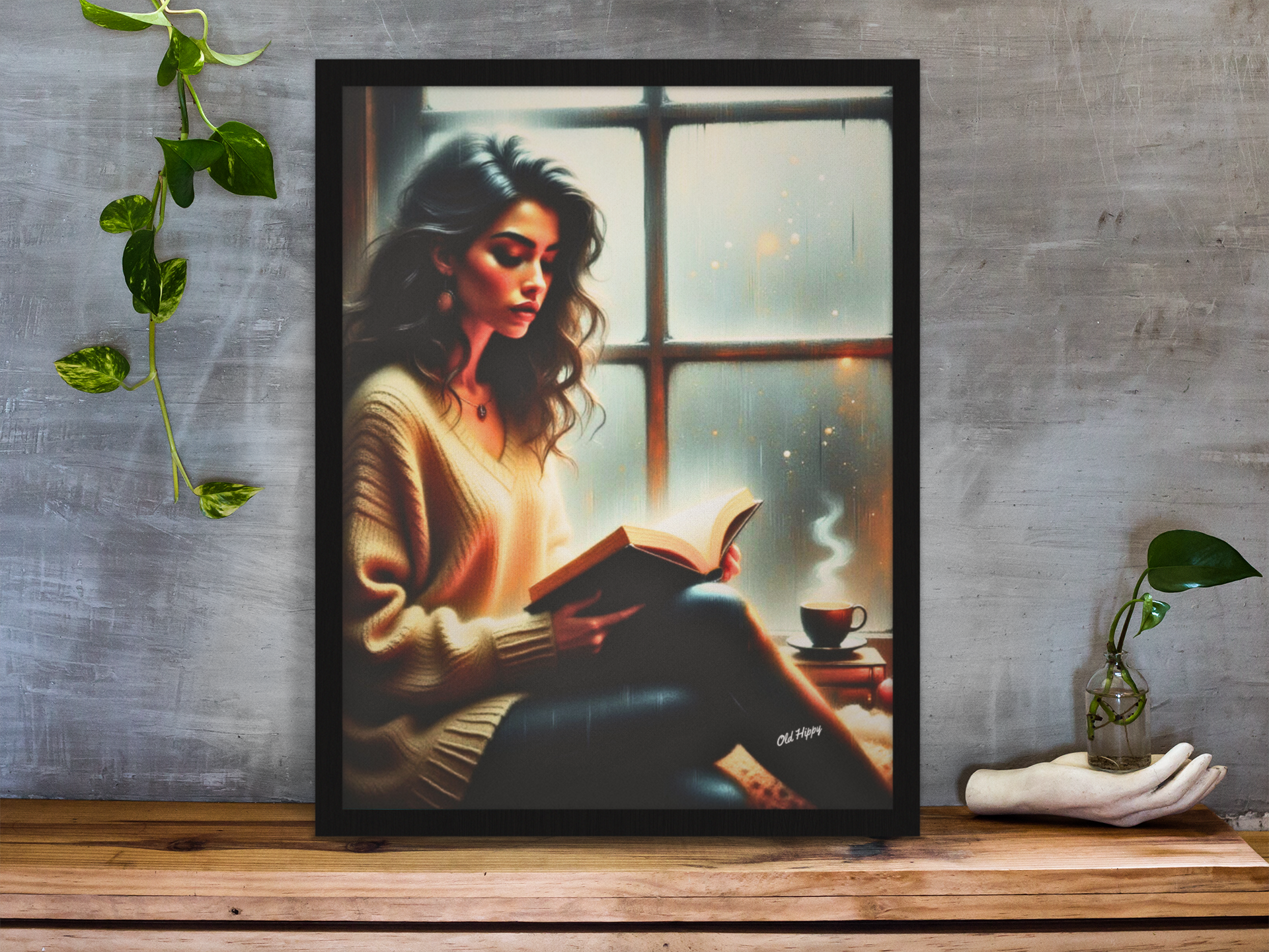 Immerse yourself in the warmth of stillness with “Quiet Moments” by Old Hippy, a limited edition AI-generated Wood Framed Canvas Art. This richly detailed piece captures the tranquil beauty of a woman lost in the pages of a book, seated beside a rain-kissed window. A soft sweater, a steaming mug, and the golden glow of afternoon light invite you to slow down and savor the moment.