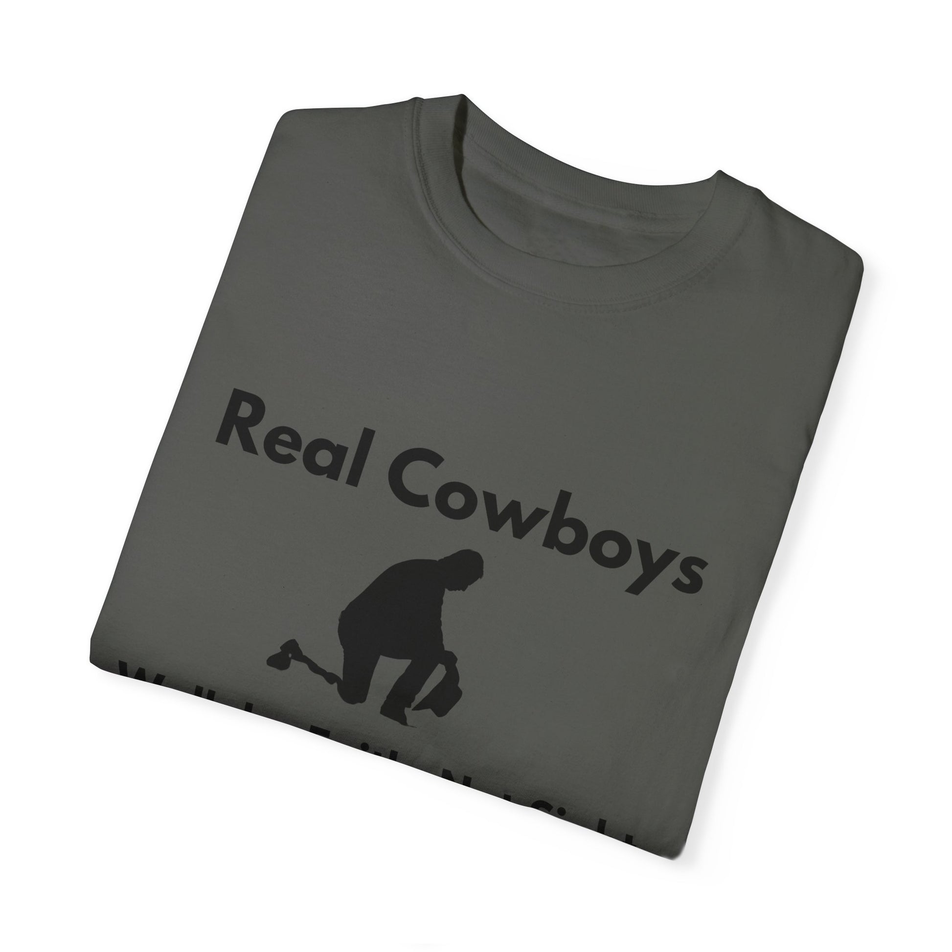 Cowboys don't speak a lot so let this quality T-Shirt do your faith talking. Crafted for comfort, it features a relaxed fit that makes it ideal for casual outings or semi-formal events. The unique garment-dyed process gives the fabric a soft feel and rich color, creating a stylish vibe. This t-shirt is great for anyone who appreciates quality apparel, from party-goers to those looking for everyday wear. It makes a thoughtful gift for holidays, birthdays, or just because. Get ready to enhance your wardrobe with this essential piece!