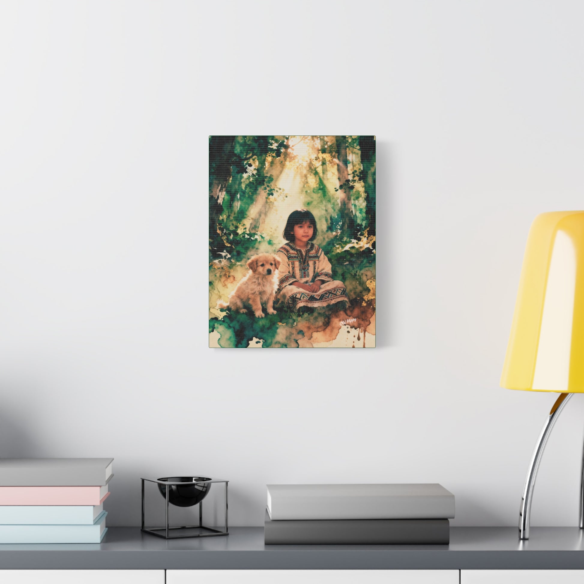 Created by Old Hippy, this canvas is a celebration of childlike wonder, faithful companionship, and the sacred calm found in untouched places—perfect for living spaces that value warmth, reflection, and soul.