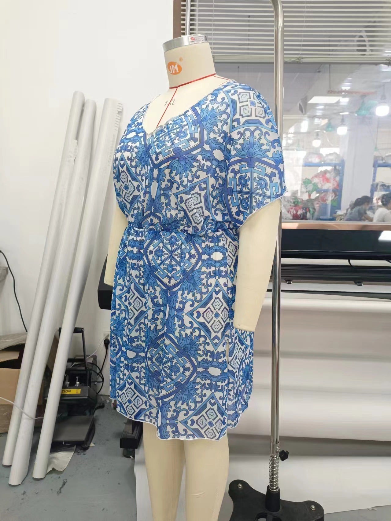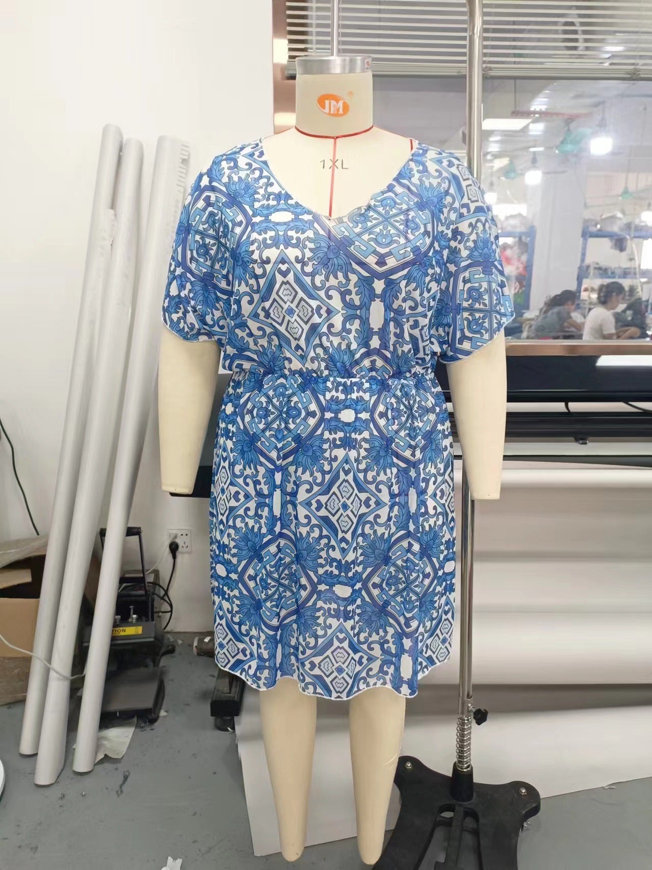 Women's Blue Printed Beach Cover-Up Dress – Lightweight Polyester