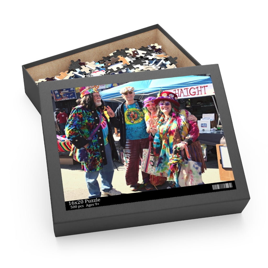 Senior Hippies reliving the Summer of Love in San Francisco. Puzzles are the perfect downtime activity for friends & family. This jigsaw puzzle is made with high-quality chipboard pieces and ships in a gift-ready box which also features the design for extra presentation points.