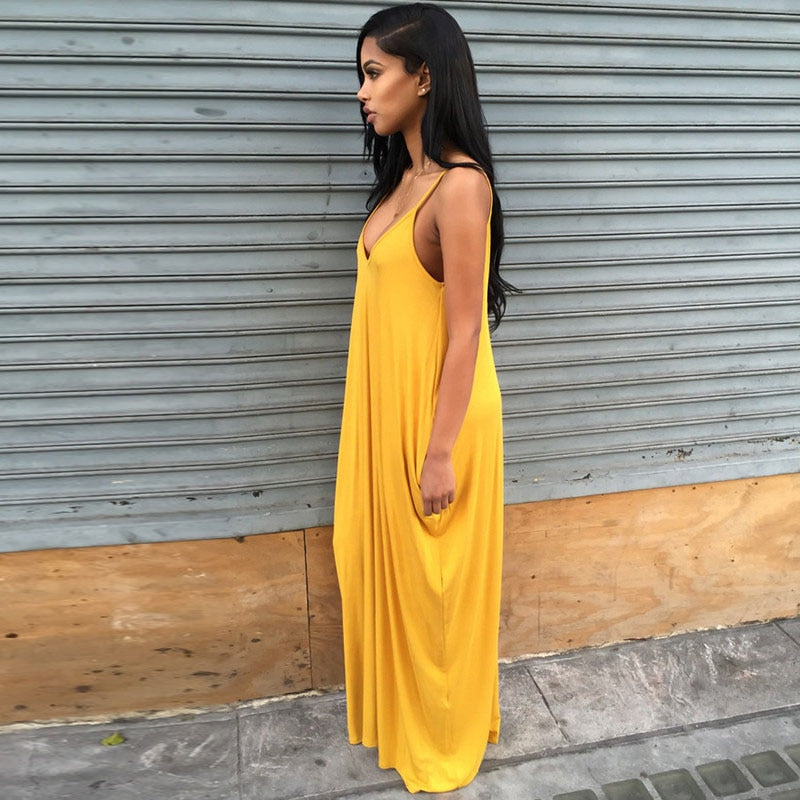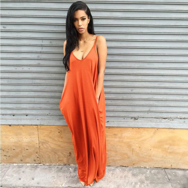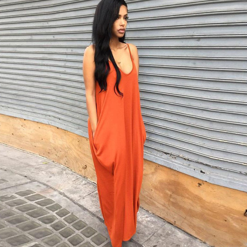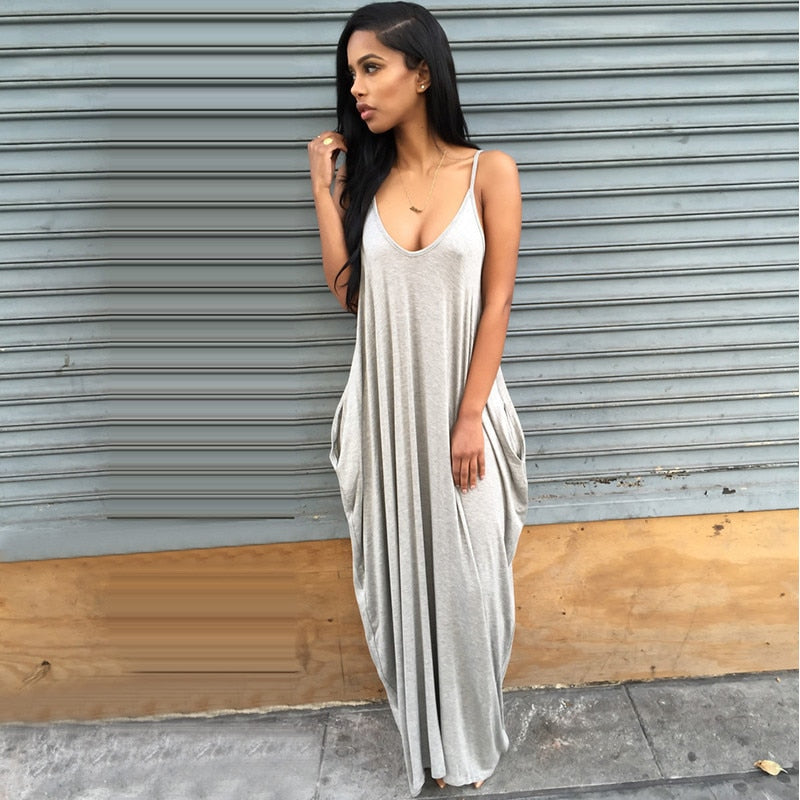 This is gorgeous sleeveless maxi dress features a relaxed, flowy silhouette with a deep V-neckline and adjustable spaghetti straps. Made from a soft, breathable fabric, it drapes beautifully for a flattering yet casual look. Side pockets add both comfort and practicality, making it perfect for everyday wear, beach outings, or weekend getaways. Effortlessly chic and easy to style — just add sandals and your favorite accessories for an instant warm-weather outfit.