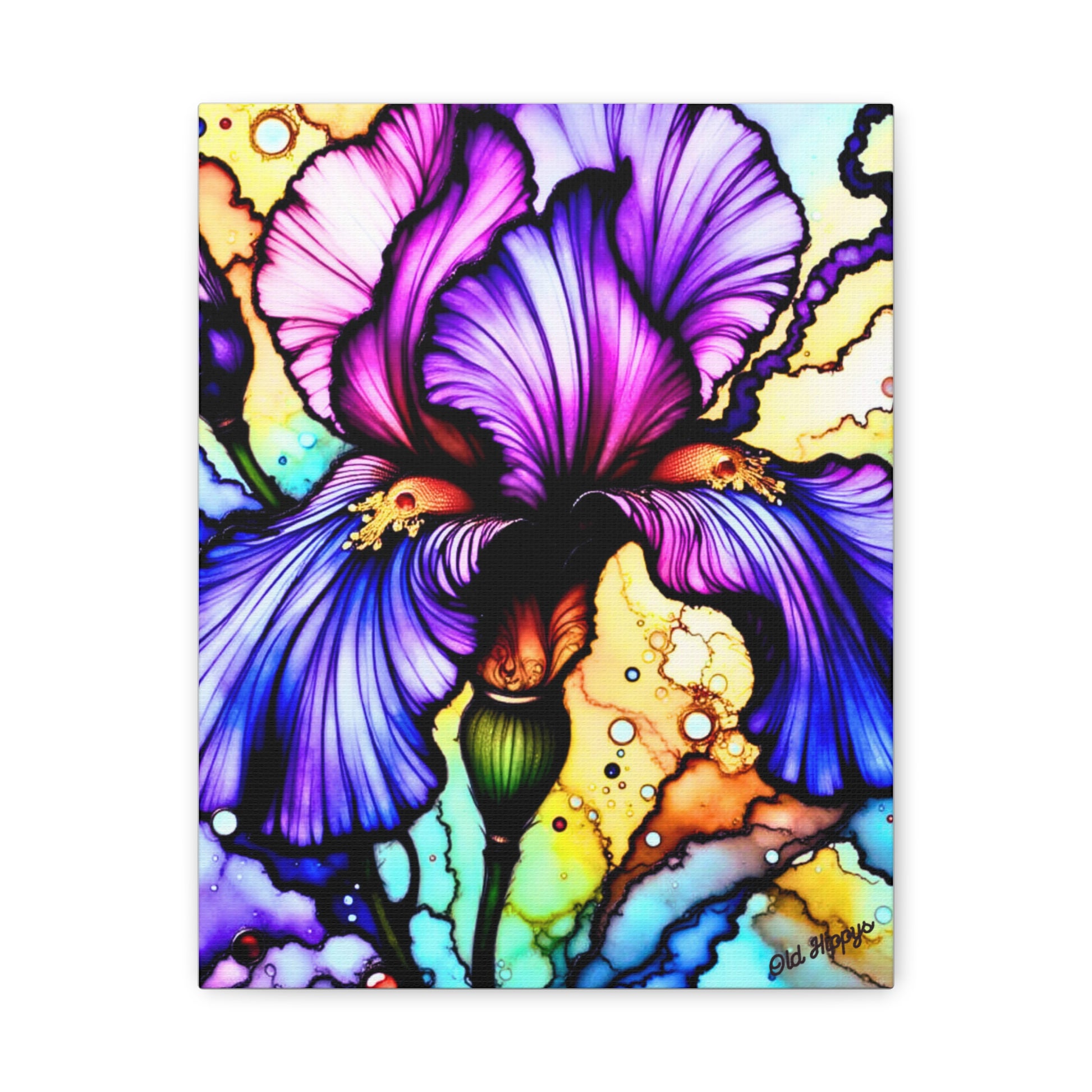 A vibrant and modern abstract painting featuring swirling iris flowers in bold colors. The dynamic and fluid composition of this AI Art creates a dreamlike atmosphere that is both organic and contemporary. Perfect for art enthusiasts and home decor lovers looking to add a pop of color to their space. Relevant for holidays, celebrations, and occasions that celebrate art and creativity.
