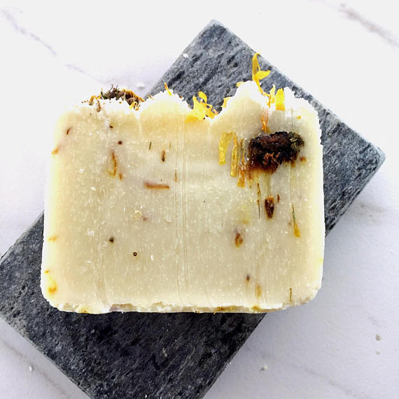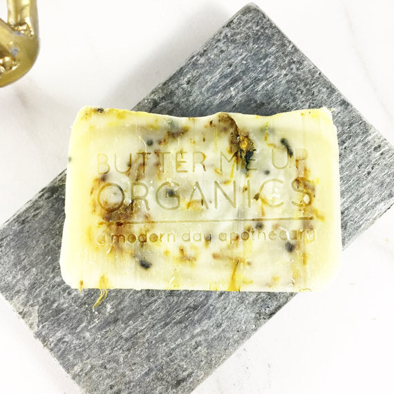 Want a soap that perfectly captures the feeling of summer? This bar will do the trick. Made with a beautiful blend of Bergamot, Sweet Orange and Sandalwood, this bar captures, the sweetness, the happiness and the warmth of summer. We've added beautiful calendula flowers that remind us of the sunshine as well as completely nurture your skin. This bar is made from the best stuff on earth and will not only make your nose happy, but your body happy as well. It will leave your skin soft, hydrated and glowing. This soap is vegan. Ingredients: Saponofied Olive Oil*, Coconut Oil*, Sustainably Harvested Palm Oil*, Safflower Oil*, Shea Nut Oil*, Camelina Oil*, Calendula flowers*, Bergamot Oil*, Sandalwood Oil, Jojoba Oil, Sweet Orange Oil. *Indicates certified Organic This posting is for one 4oz. bar. Weight may vary slightly from bar to bar as they are handcrafted in small batches and hand cut, which makes each bar completely unique! The herbs, oils clays and essential oils are the highest quality and specifically chosen for their health benefits to the body. Free of harsh detergents, dyes and synthetic fragrance these are the purest and most beneficial soaps you can buy. Our bars are hand cut so each bar is completely unique! We’re confident that you’ll love our soaps! Great for gifts or for yourself. Product can be special ordered in different sizes/quantities. Please allow 4-6 weeks for curing process. If purchasing multiple bars, a flat rate shipping box can be used for $5.95. Shop Info: Organic Completely cruelty free No sulfates, phthalates or parabens…ever No synthetic dyes or fragrances Completely all natural and safe Zero waste company Packaging upcycled when possible Everything is made with love <3