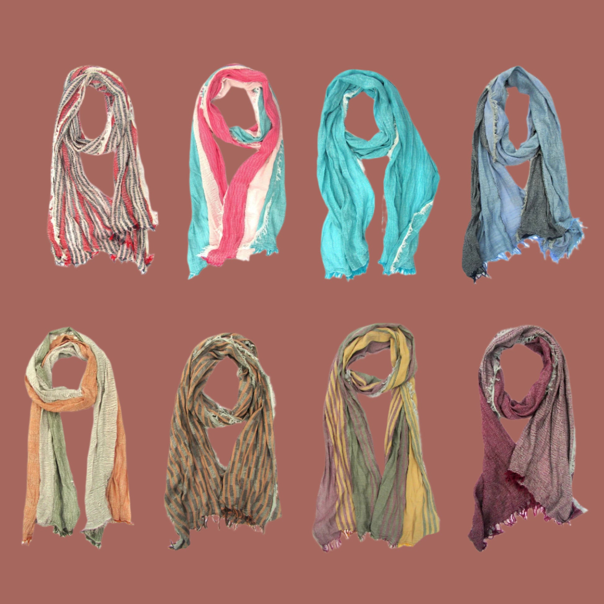 Perfect blend of 100% Turkish cotton and viscose makes these scarves incredible soft, durable and lightweight. The size is 20" x 72", slightly sheer with with fringe details on the edges. You can wear it long, short, knotted, as a head wrap the options is endless. The beautiful colors and designs make this scarf more a versatile fashion accessory than just a functioning add-on in cold weather that you can wear it all year long. Keep this light weight scarf on when you remove your coat as a cosy fashion statement. Suitable for both casual and formal wear.