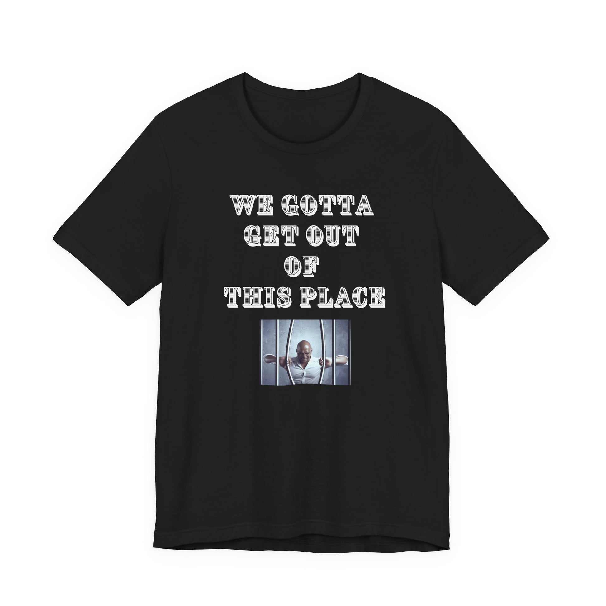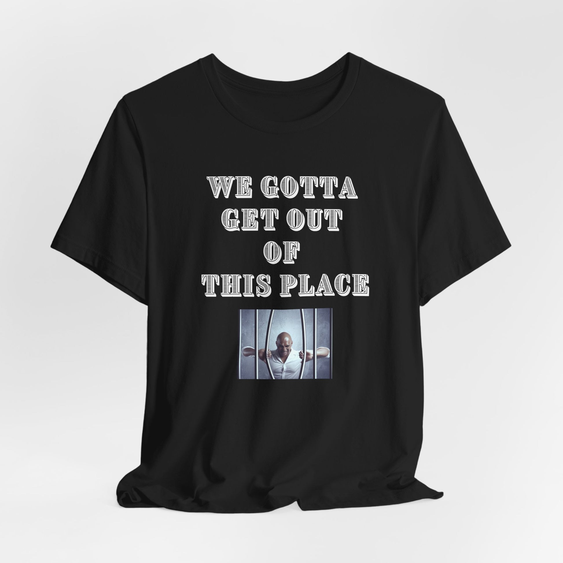 This lightweight jersey tee channels late-night radios and worn leather jackets with a straight-from-the-venue line: "We Gotta Get Out of this Place." Soft, breathable cotton sits close to the skin without feeling heavy, making it an easy layer between city streets and open highways. The shirt wears in, not out — the ribbed collar and shoulder tape keep the silhouette sharp after repeat washes while side seams preserve its shape. Sleeve and neck-print details are rendered with crisp, modern printing for that vintage-yet-clean look. Slip it on before a dive-bar set, a road trip, or a night of singing along with friends; it carries the urgency and camaraderie of a chorus meant to be shouted.