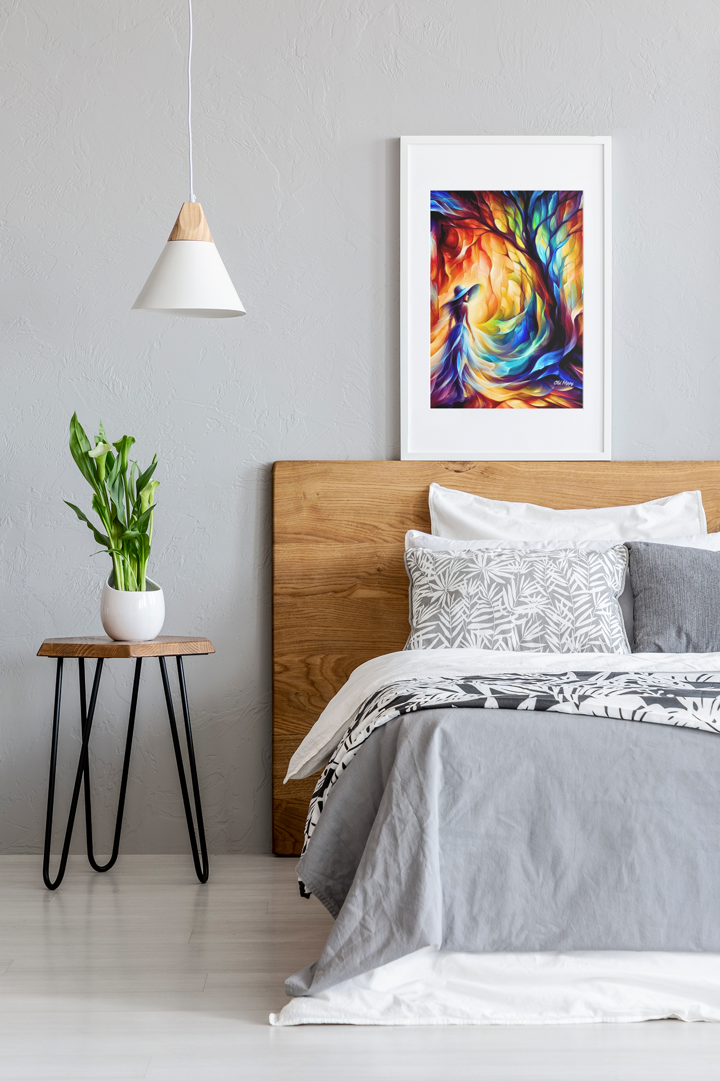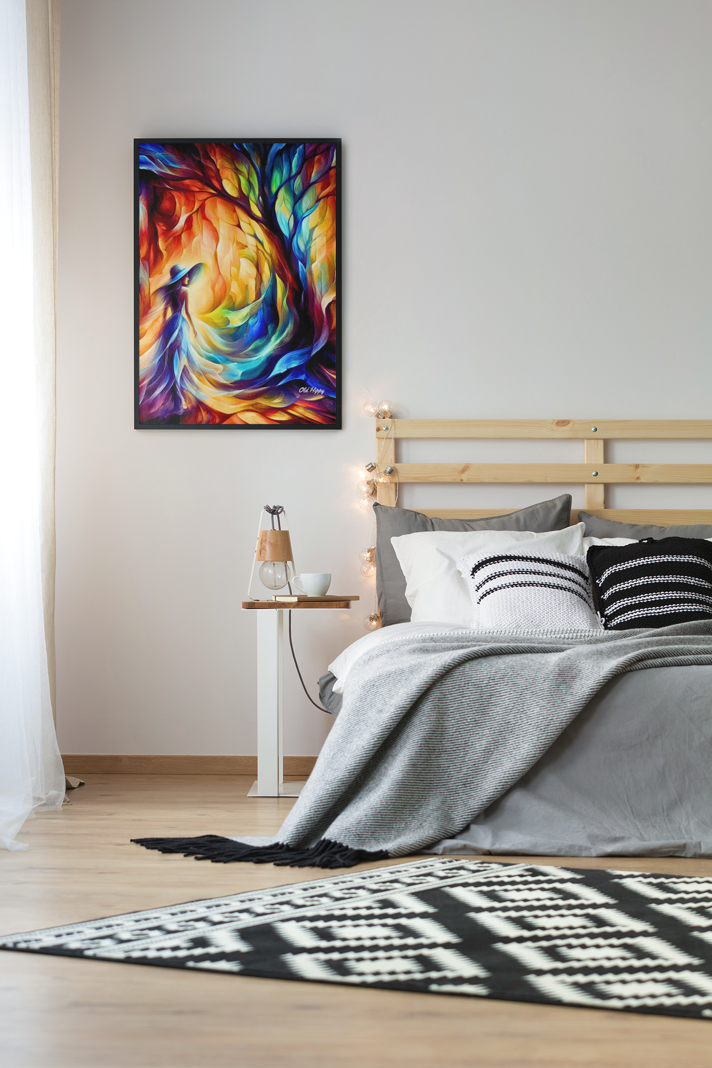 This artwork speaks to themes of transformation, mystery, and unity between human and nature—an abstract portal into a realm where color breathes, and silence speaks.