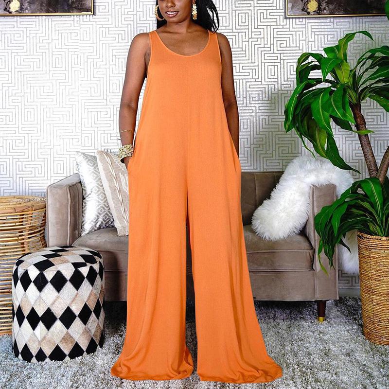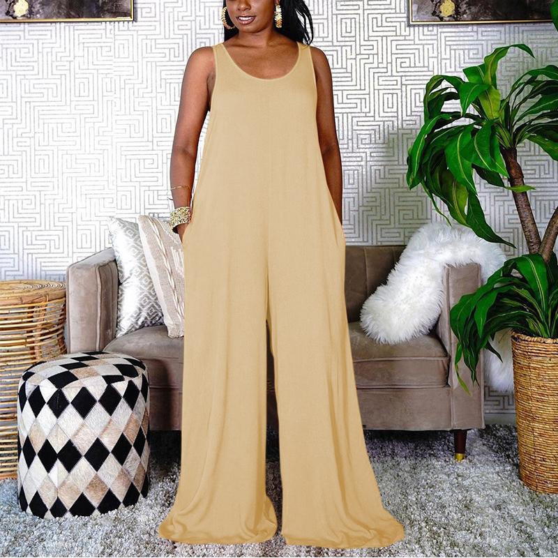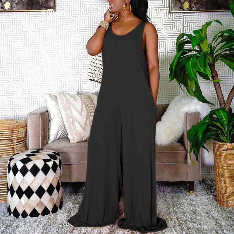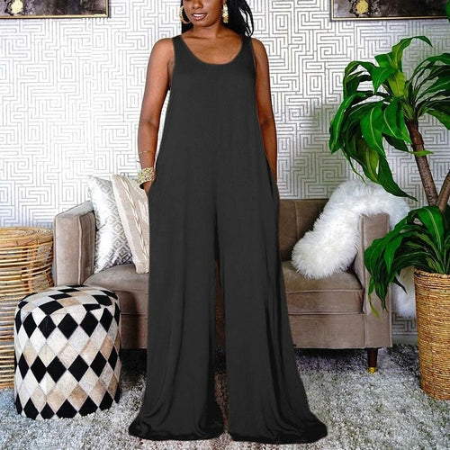 Relax while looking elegant in this Women's plus size Casual O-Neck Sleeveless Jumpsuit with wide legs.
